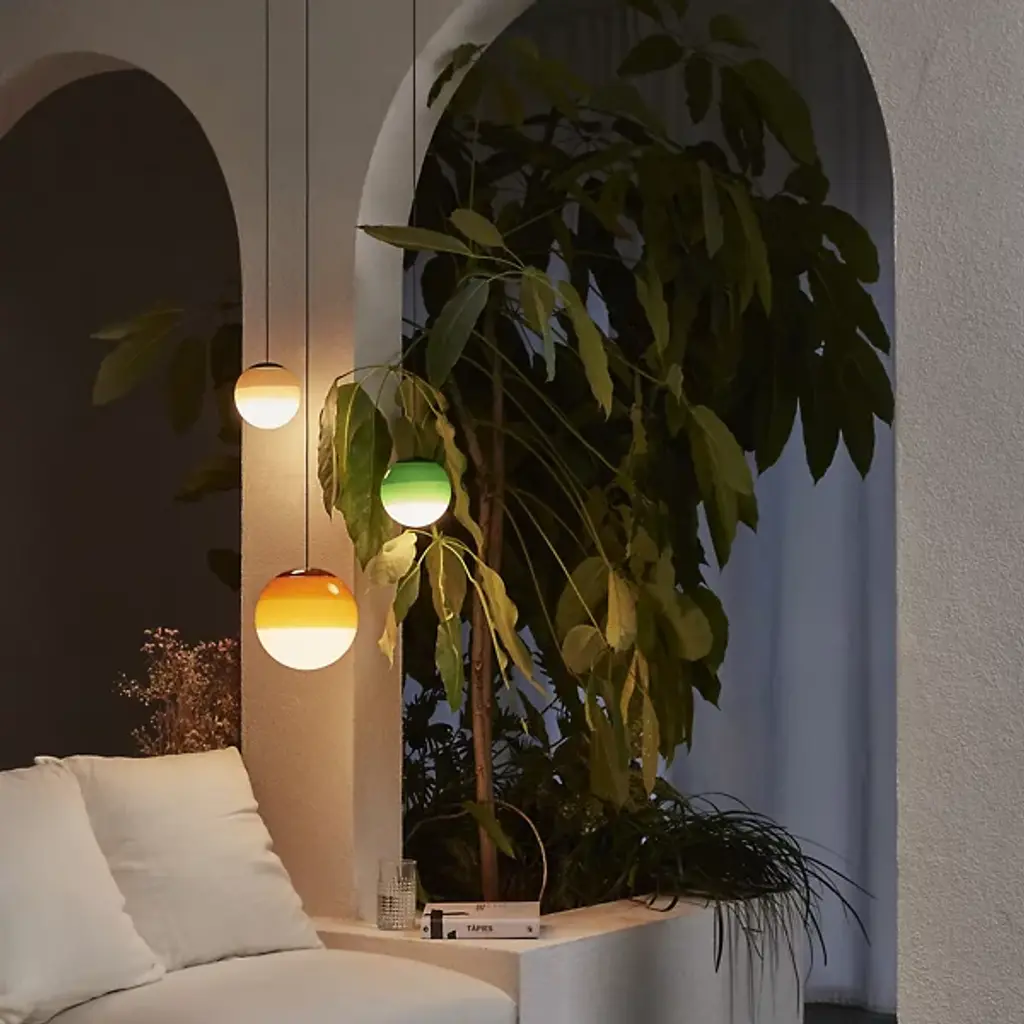Add a kaleidoscope of color to your inside spaces with the Dipping Light LED Pendant by Marset. A simple design from the mind of Jordi Canudas, it exemplifies his experience in product development and interior design, starting by suspending a single LED lamp from a low-profile canopy via a single thin cable. This lamping descends from a dish retention mount that blends into the globe shade of blown glass below, its sleek and opaque surface contrasting perfectly with the “Dipped” strips of color on the shade’s surface that shine out a multifaceted glow of their own. Small and medium sizes come non-dimmable or with low voltage 0-10V dimming which requires 2 additional wires. Before selecting 0-10V dimming we recommend consulting with a qualified electrician to determine compatibility.