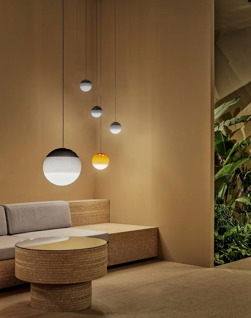 The new suspension Dipping Light gets rid of everything to keep only the essential, with color taking center stage. When using several lamps to make a composition, the visual effect is mesmerizing This version of the Dipping Light comes in three sizes and multiple color options.