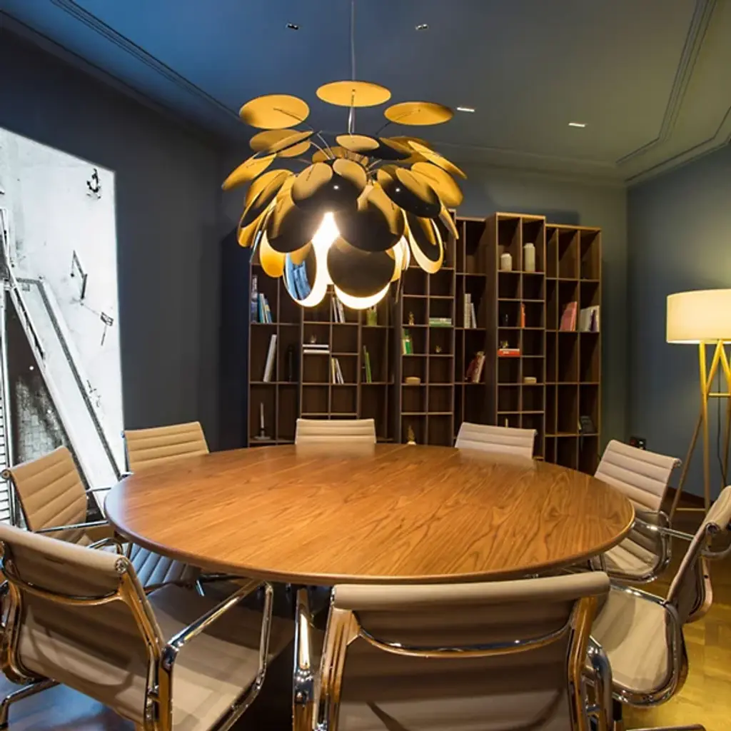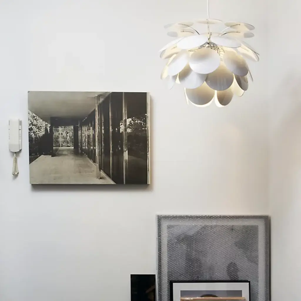 Designed by Christophe Mathieu, the Marset Discoco Pendant consists of a series of lacquered discs that float around a chromed semi-sphere. The discs act as layers that shield the light source while at the same time redirecting and reflecting the light onto the underlying discs. The result is a distinct and unique light which fills and enriches any space.