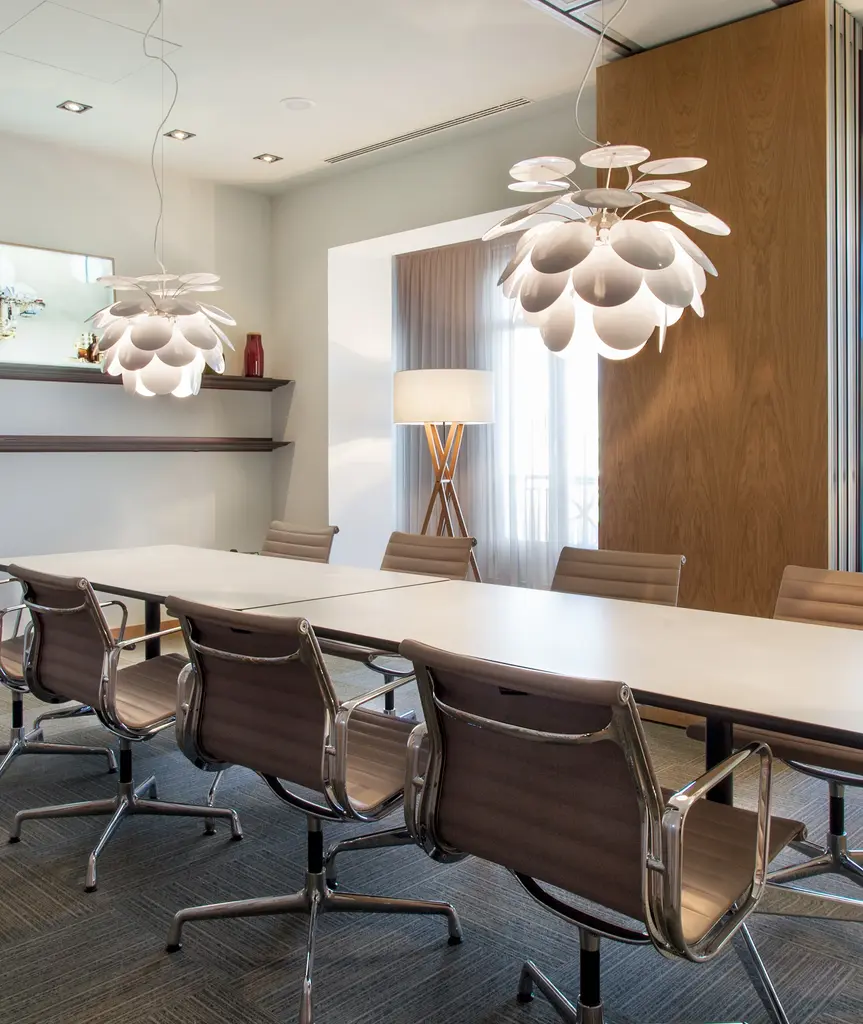 Exuberant even when turned off, the richness of the light issuing from the Discocó lamp provides direct downward illumination along with a dramatic play of lights and soft shadows. Its detailed study of incident light and light that bounces off of both sides of the 35 disks provide the lamp with an appealing gradation of light nuances and depth. Further reflections dance off the chrome-covered sphere at the core, where the disks are anchored. When the light is turned off, it retains its attractive presence, hinting at the expansion of energy that is fully expressed when it is turned on.
