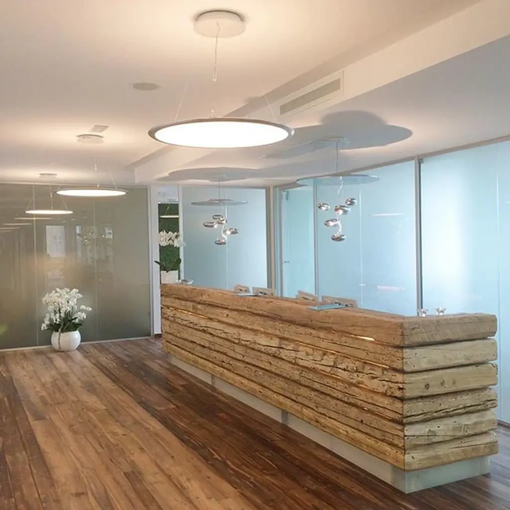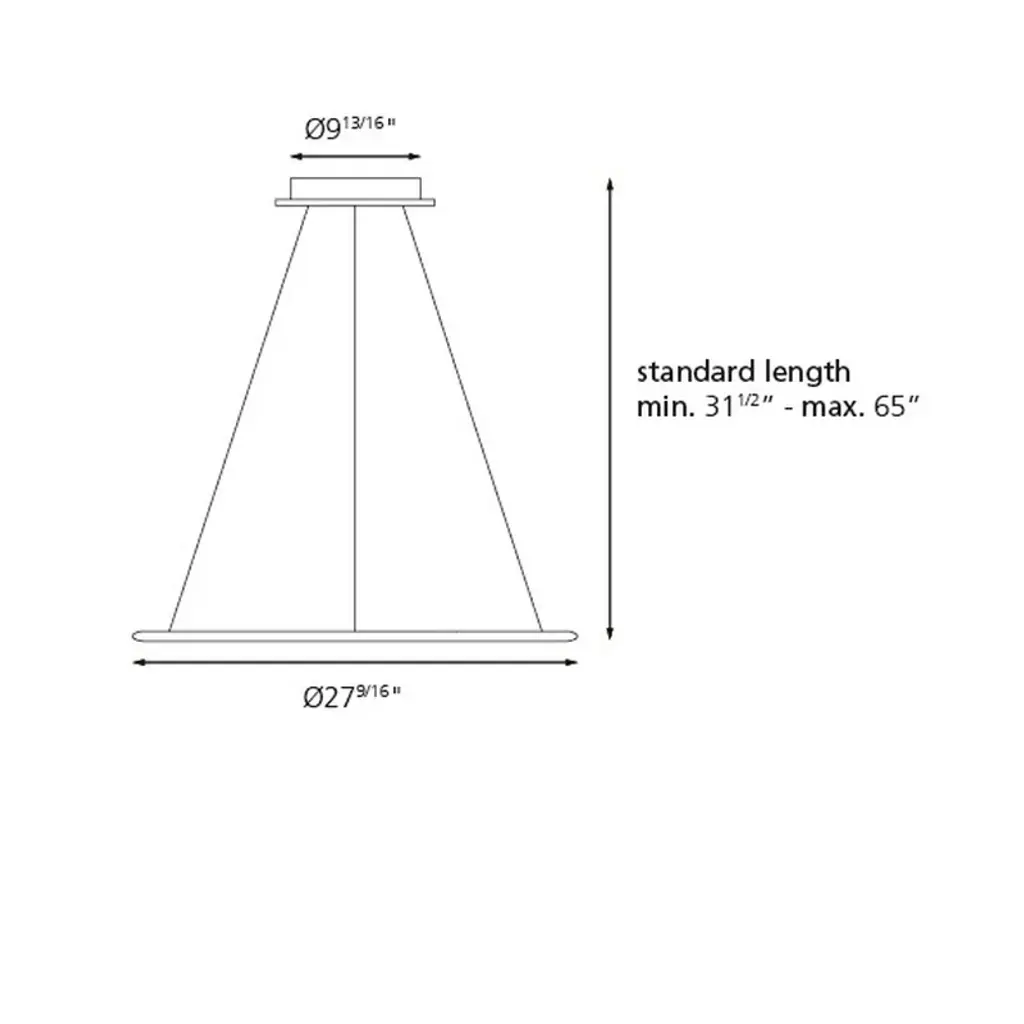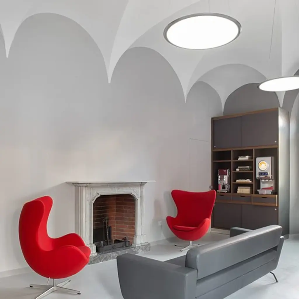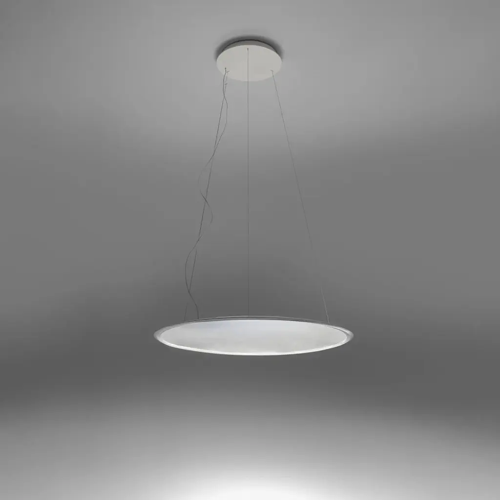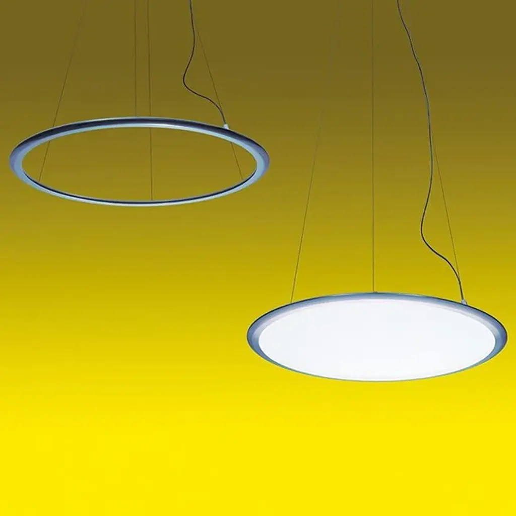 “To find out how to produce such a thin and light ring they turned to bicycle manufacturers, and the result was this very light luminous profile and an almost invisible lamp.” – Ernesto Gismondi Discovery is a family of appliances based on minimal geometry. A very light aluminum ring houses an LED strip that injects light into a specially worked surface of transparent PMMA. The diffuser is composed of a perfectly transparent PMMA surface, processed with micro particles so small that the surface is hardly perceptible when the appliance is turned off. When the appliance is turned on, the transparent interior appears to fill with light as if by magic, as absence is turned into a perfectly diffusing emitting surface. This unique result is obtained through Discovery’s direct and indirect emissions, which produce an embracing and uniform light. Their geometry and layout are calculated to obtain constant emission throughout the surface. Discovery is an unprecedented development of a well-known optical principle, conveyed through the controlled interaction with matteer and a focus on its yield and perceptive qualities. Available in wall & suspension. Features