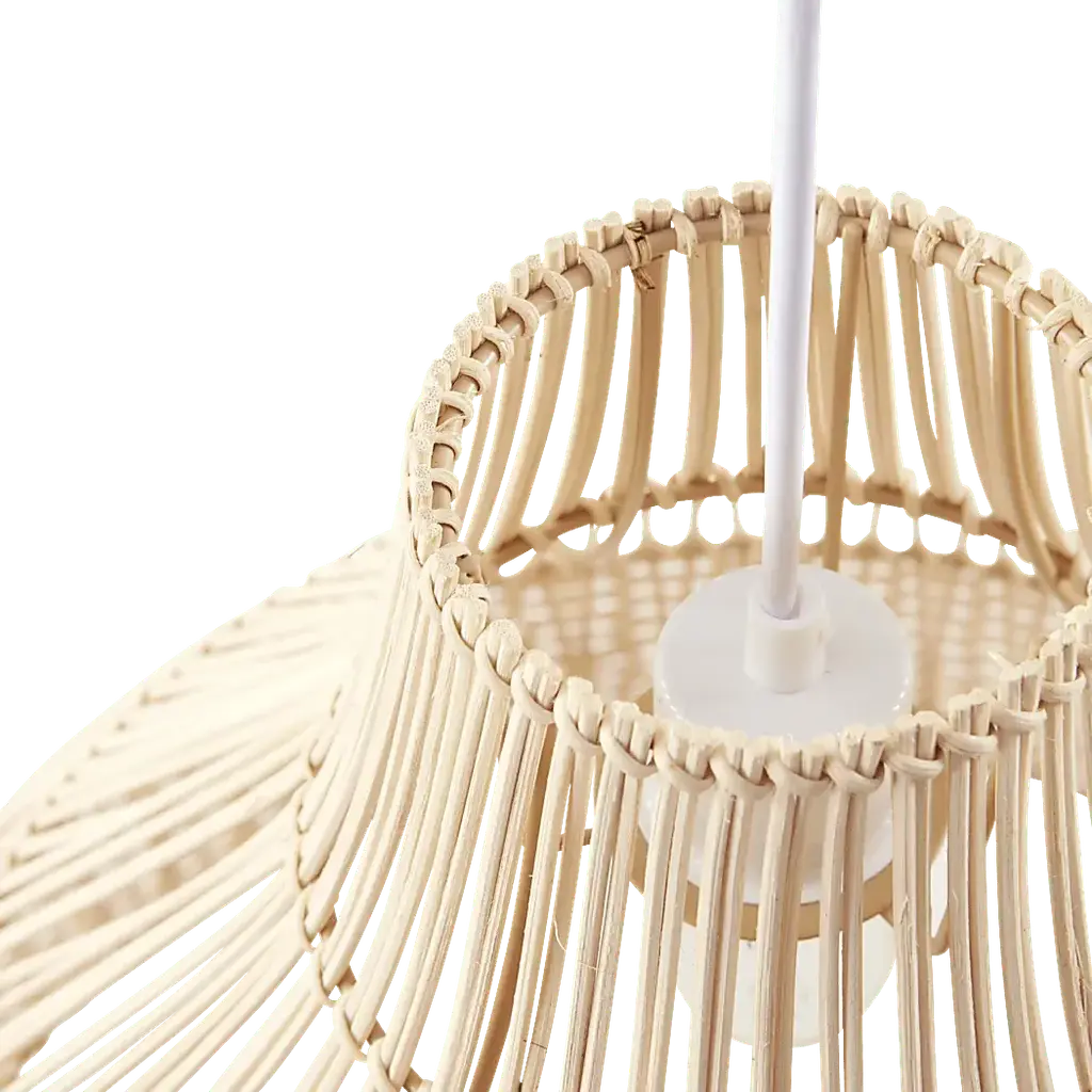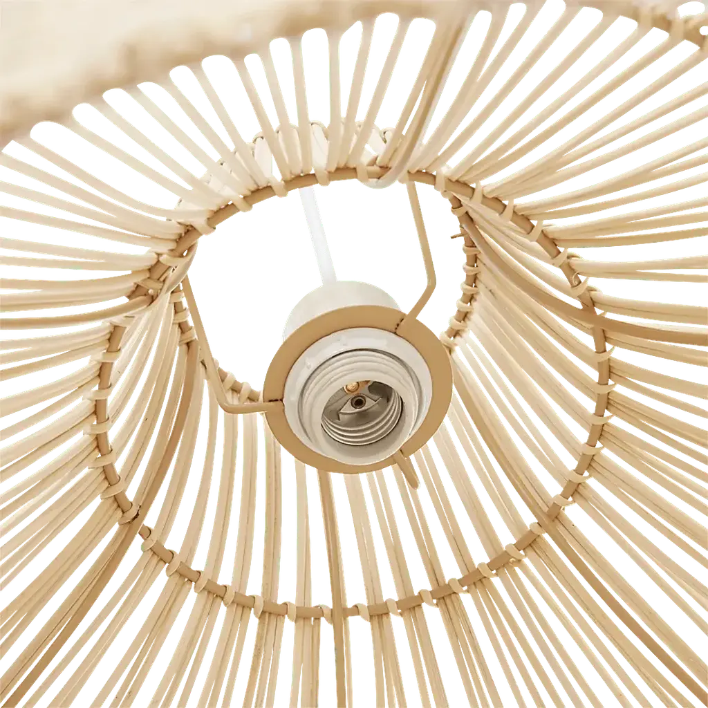 The Distel Place Natural Pendant introduces a soft and artistic element to any room in your home. The bell shade is made from natural bamboo and features intricate weaving that will look stunning lit or unlit in your space. The unique design of this light fixture makes it suitable to complement a variety of home design aesthetics. Professional installation by an electrician is recommended.