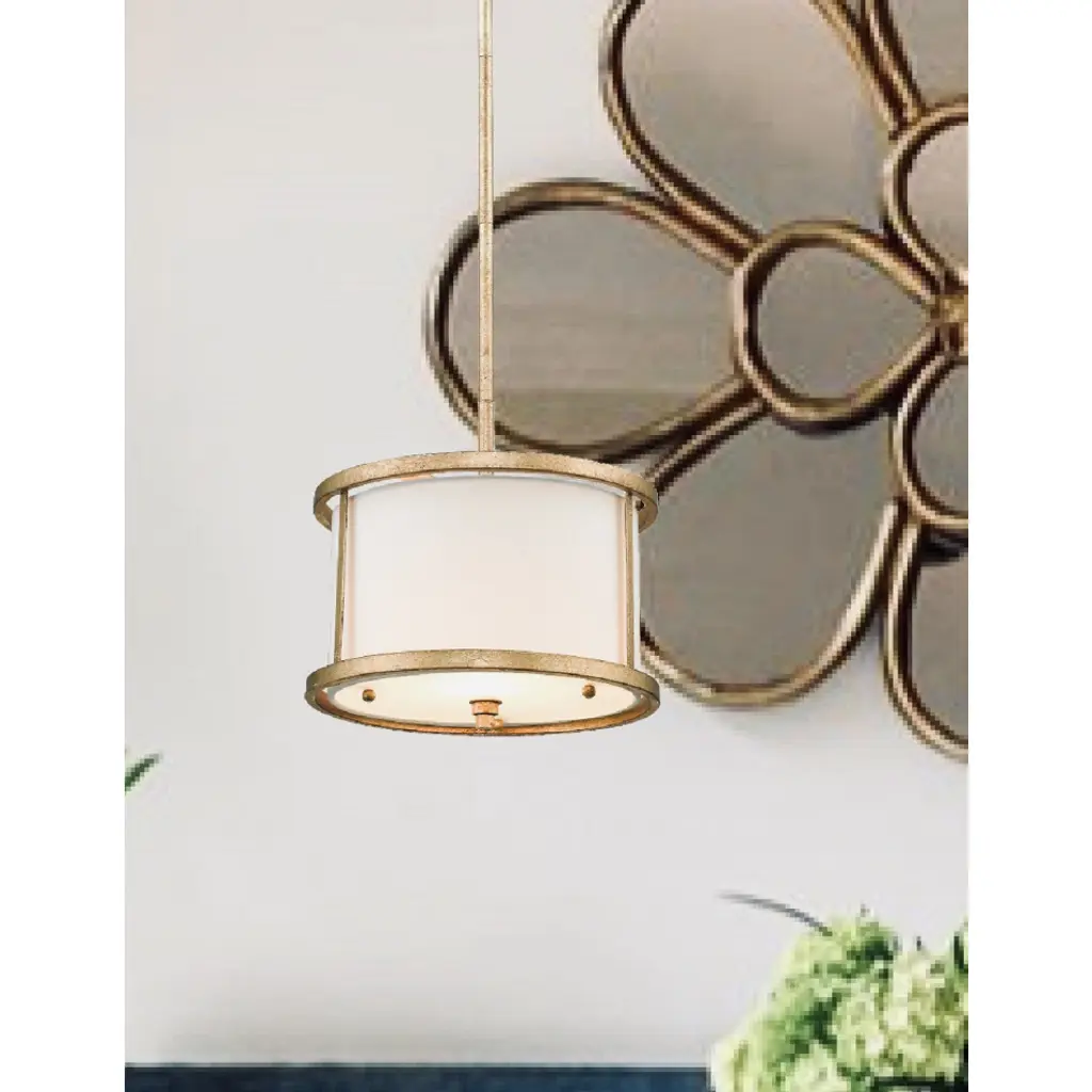 A one-of-a-kind design that is the perfect focal point in our Warm Vintage Gold finish. Simple, sophisticated design and on-trend distressed gold finish makes this go-anywhere mini pendant and ideal option for creating ambient light in a charming and stylish way. The beautifully designed Lemuria series has a distressed gold metal outer shade with a cream linen fabric inner shade and glass diffuser to soften the light. The Mini pendant is shipped with extra stems for an adjustable height, and can be installed as a semi-flush.