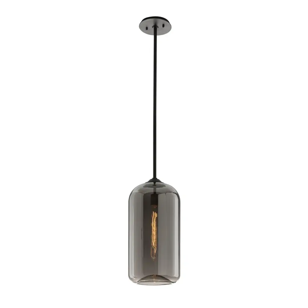 Inspired by vintage industrial fixtures, this pendant light pairs its tubular incandescent bulb with a cylindrical shade of moody gray glass. It hangs at an adjustable height from a sloped ceiling-compatible canopy – hello placement options. Add a dimmer switch for instant ambiance adjustments.