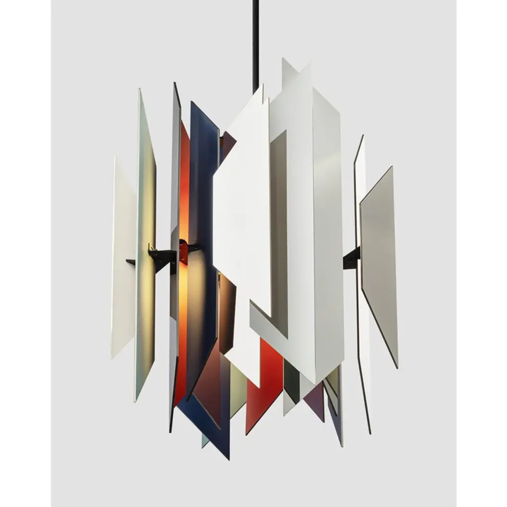 LYFA’s Divan 2 is a stunning pendant lamp designed by Simon P. Henningsen in 1962, consisting of overlapping steel trapezoids carefully assembled one by one. Although they definitely make the luminaire look quite impressive, the trapezoids’ function is not only esthetic: they also filter the light in a way that makes it comfortable and glare-free. As a result, the Divan 2 pendant provides soft, indirect lighting. The Divan 2 pendant is named after the eponymous restaurant in Tivoli Gardens, Copenhagen, for which the lamp was originally designed in the 1960s. Stainless steel was chosen as its material to allow Tivoli's evening lighting to be reflected from its hand-polished surfaces to the delight of guests dining at the restaurant. To add to the lamp’s charm in daylight, the trapezoids were painted in red, purple, blue, green and white on the other side – the multicolored inside gives the lamp a fascinating look that changes depending on the viewer’s position.