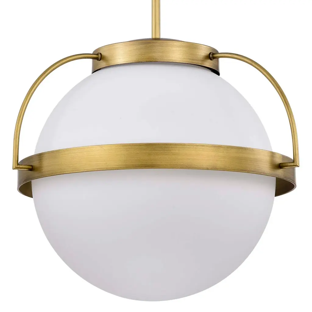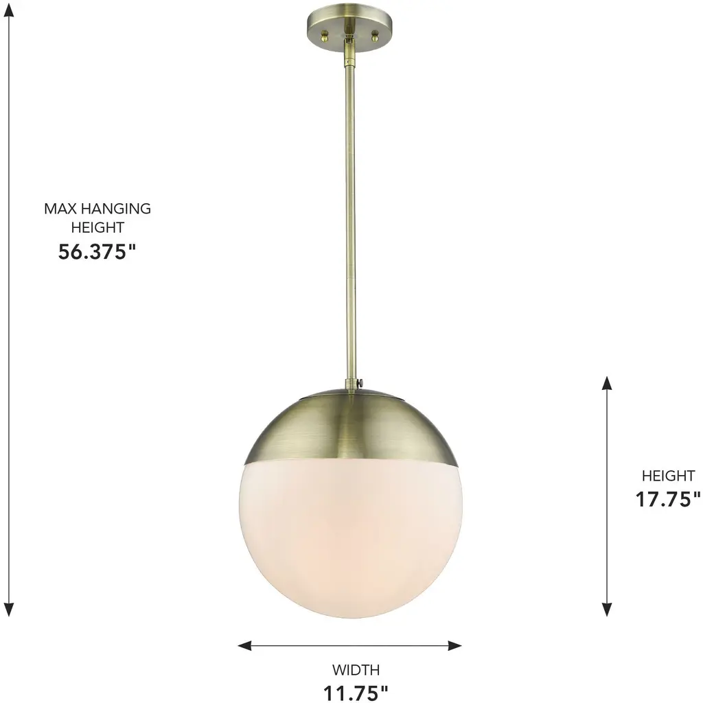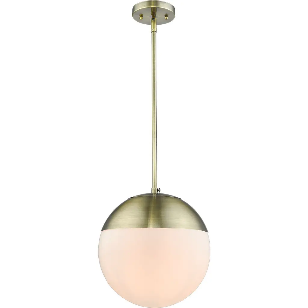 Bring timeless elegance into your home with the Golden Lighting Dixon 1-light Pendant in Aged Brass. Featuring a glass shade and an Aged Brass frame, it creates a welcoming atmosphere.The glass shade brilliantly diffuses light, enhancing the aesthetic of the pendant.Embrace timeless elegance with our Aged Brass finish. This sophisticated finish offers a warm, inviting glow, reminiscent of vintage heirlooms and classic hardware.Perfect for kitchens, dining rooms, and bedrooms, the fixture is Damp Location Rated, making it suitable for covered spaces with occasional moisture. It's also sloped-ceiling compatible, with an adjustable height ranging from 20.375" to 56.375".Overall Dimensions: 11.75"W x 17.75"H x 11.75"D, requiring 1 E26 Medium base bulb (not included) with a maximum wattage of 100.Elevate your space with stylish function and quality craftsmanship.