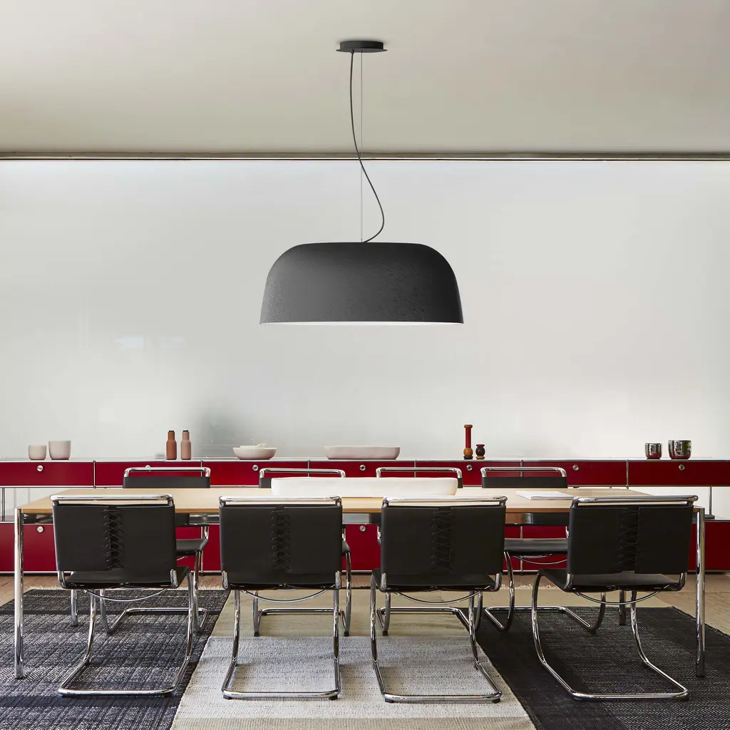Experience bold design and refined elegance with the Djembe LED Pendant Light from Marset. The carefully crafted polyethylene shade creates a striking contrast with its textured exterior and smooth interior, while exposing an eye-catching central LED bulb for a welcomed glow. Enjoy appealing downlighting in your living room, dining room, or kitchen with this unique and modern fixture. Highlights