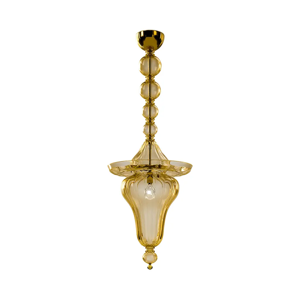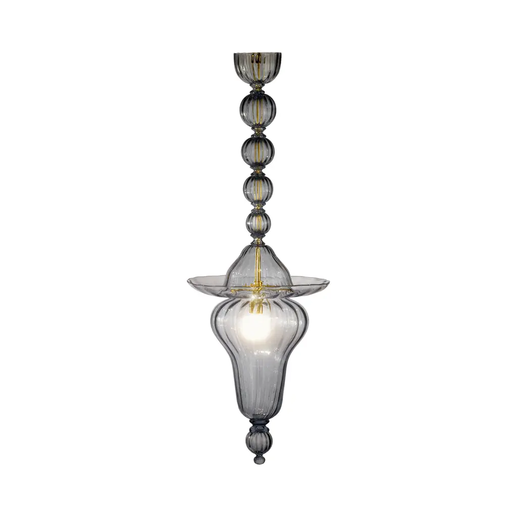 Indulge in the timeless beauty of the Doge Pendant Light from Venini. Inspired by the elaborate cesendello oil lamps of Renaissance era Venice, this pendant collection originally crafted by Napoleone Martinuzzi in 1927 exudes a delicate balance of classic and modern design. Use to bring dynamic luxury to a kitchen island countertop, or pair in multiples at varying heights for a custom dining room centerpiece. Highlights