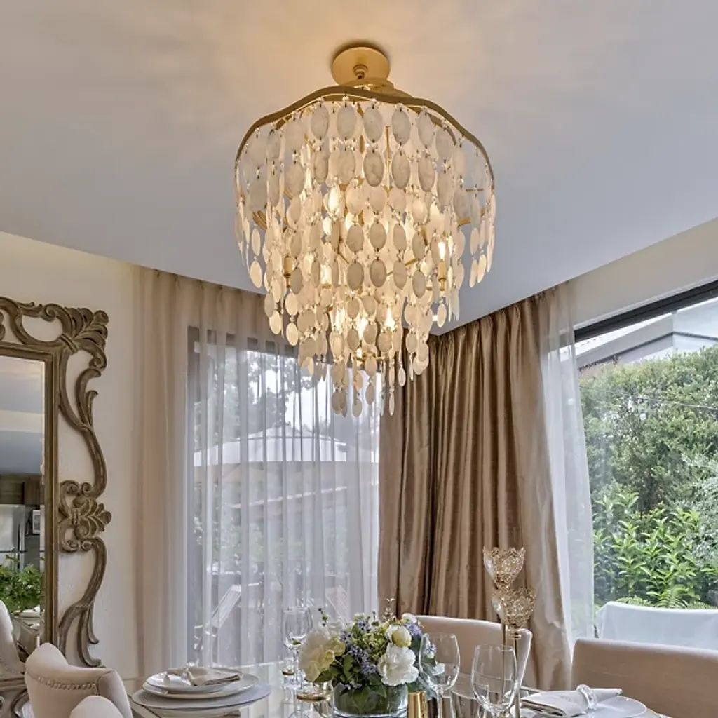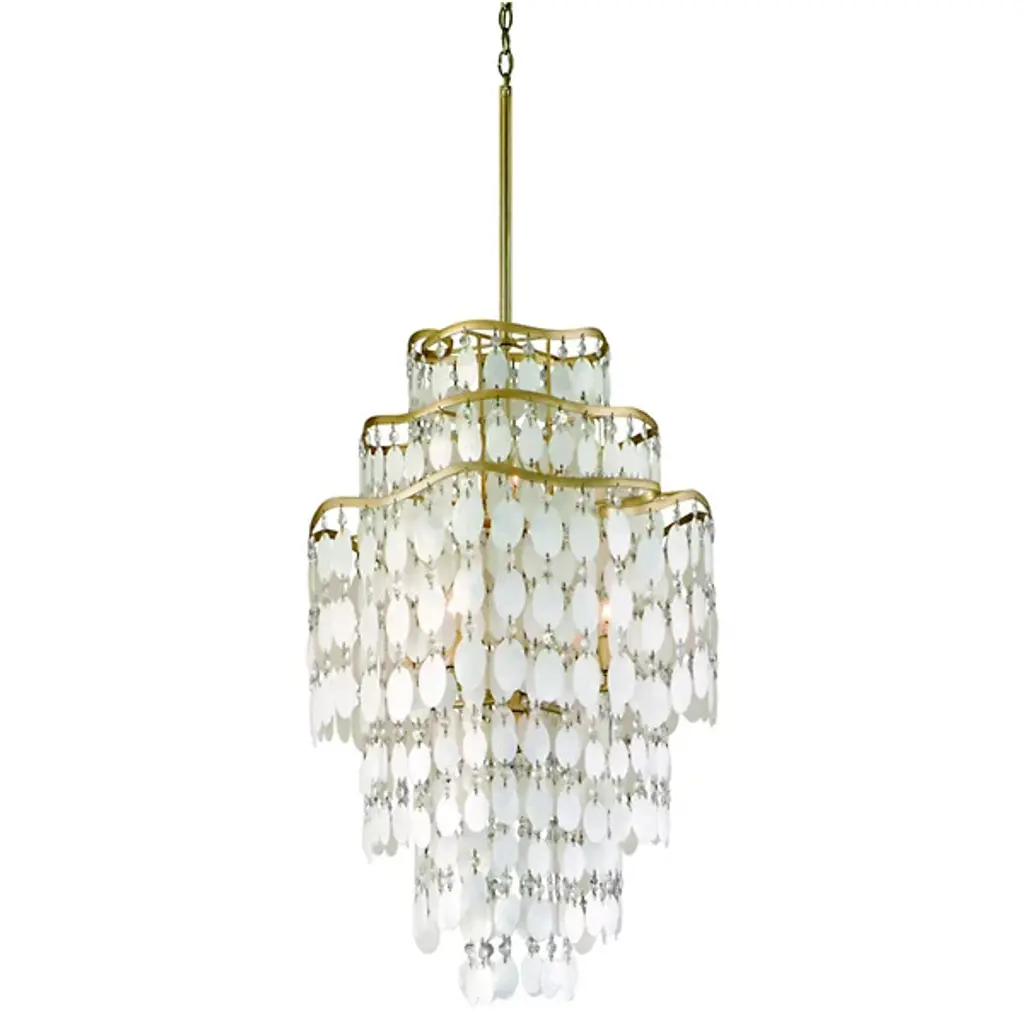 High fashion meets the high seas with the Corbett Lighting Dolce Suspension. Drapes of capiz shell and crystal strands hang from the multiple wave-like tiers of the hand-crafted iron frame. The overall result is one of oceanic elegance. Available as a twelve-light pendant (in two different sizes) or a seven-light pendant.