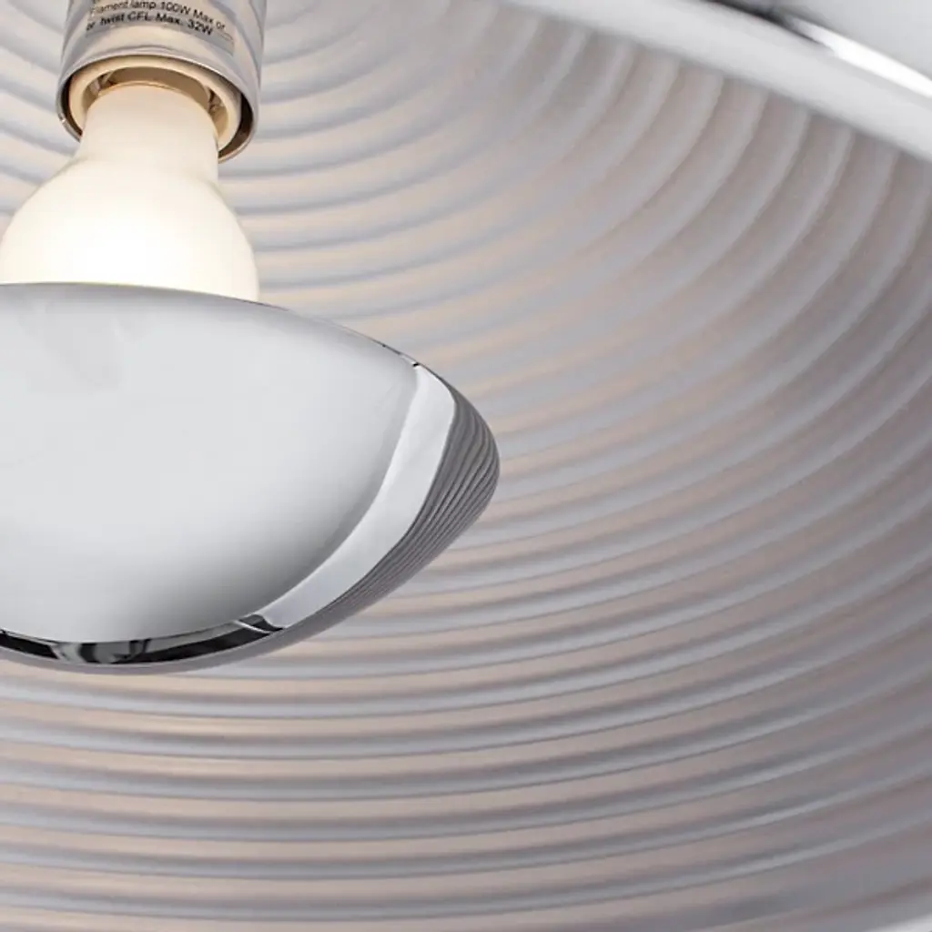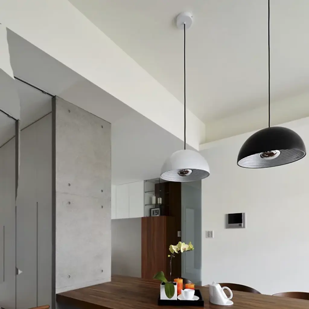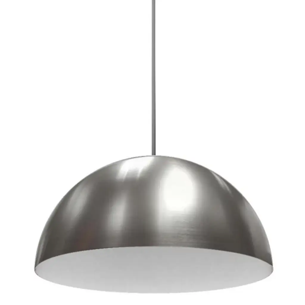 The Seed Design Dome Pendant pairs impressive craftsmanship with a bold size and clean lines. Futuristic and retro at the same time, the oversized shade has a centric-circled aluminum reflector and bulb cover, to keep the lamp out of site and prevent glaring. Great in pairs, groups or alone, this minimalist pendant speaks for itself through its high quality and sheen.