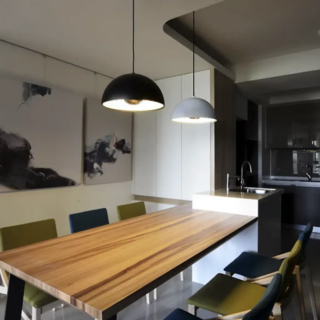 The Seed Design Dome Pendant pairs impressive craftsmanship with a bold size and clean lines. Futuristic and retro at the same time, the oversized shade has a centric-circled aluminum reflector and bulb cover, to keep the lamp out of site and prevent glaring. Great in pairs, groups or alone, this minimalist pendant speaks for itself through its high quality and sheen.