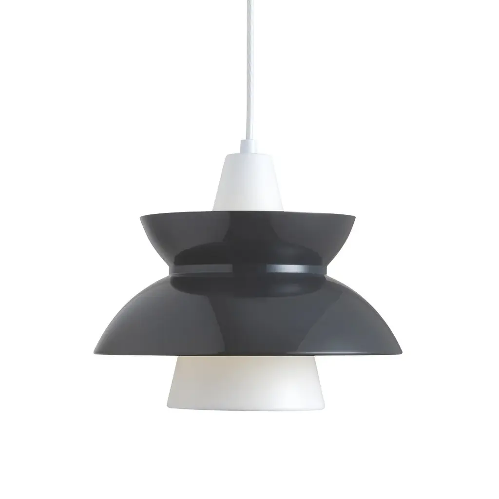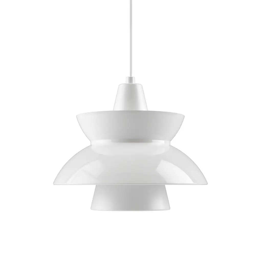 Originally introduced in the 1950s, the Doo-Wop Pendant was designed in close cooperation between the Navy Buildings Department and Louis Poulsen. The pendant was used for many years in the builidngs of the Navy for many different applications such as cateens and offices. The Navy Pendant, which was the name at that time, was widely used because of the unique lighting properties and utility. Not until the early 1980th the product was taken out of the Louis Poulsen catalogues. In recent years, more and more of the old editions have been sold again through antique stores and auctions. This has caused a demand and Louis Poulsen has been asked to re-launch the products. The new version is very close to the original. The shades are still and spun by hand and completed with the fine rolled edge which gives the shades a special opticial volume. The brass variant challenges the craftsman as it is spun from a solid brass plate and appears polished. The fixture primarily provides a downward directed soft light by means of the white lacquered inner conical reflector. The outer reflector, the main shade, contributes to directing the light up- and downwards, while at the same time spreading the soft diffuse light. The inside of the main shade is illuminated through an opening in the inner conical reflector. Doo-Wop has a white canopy.