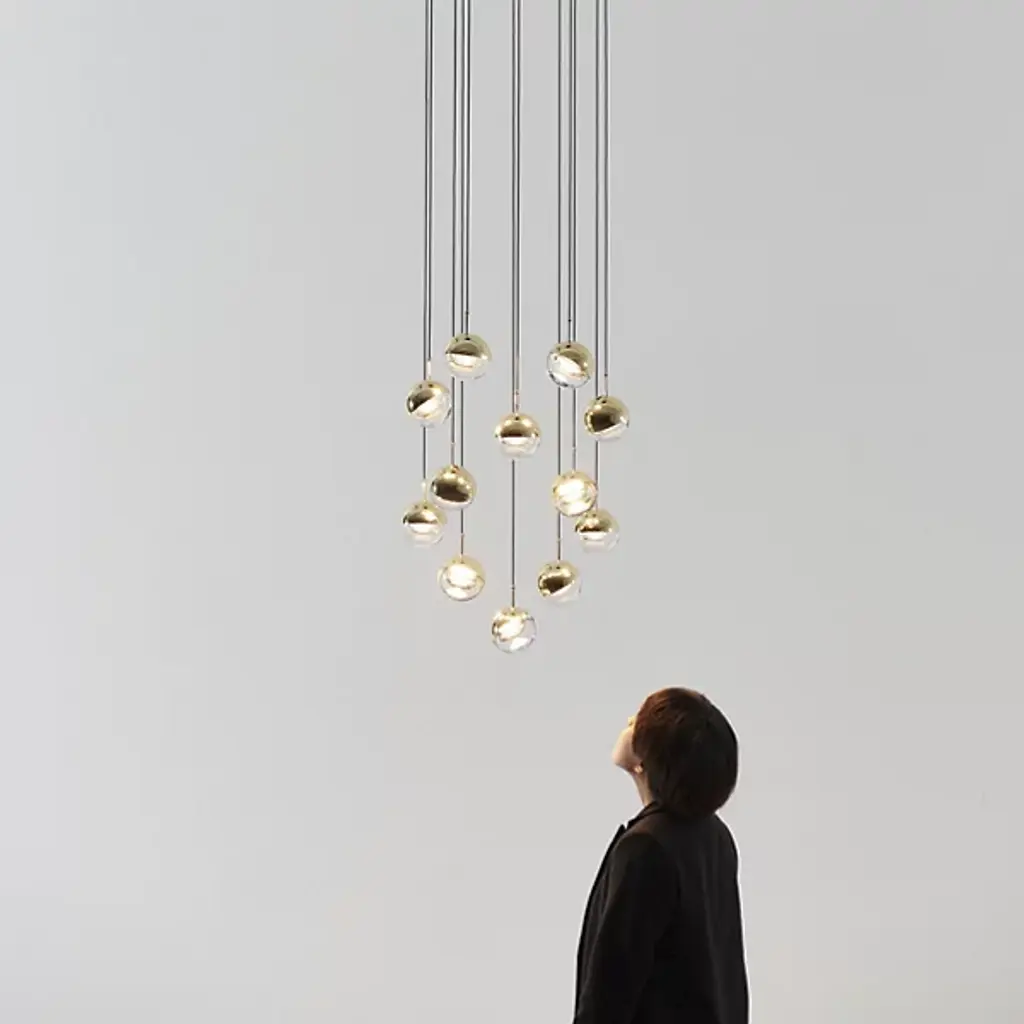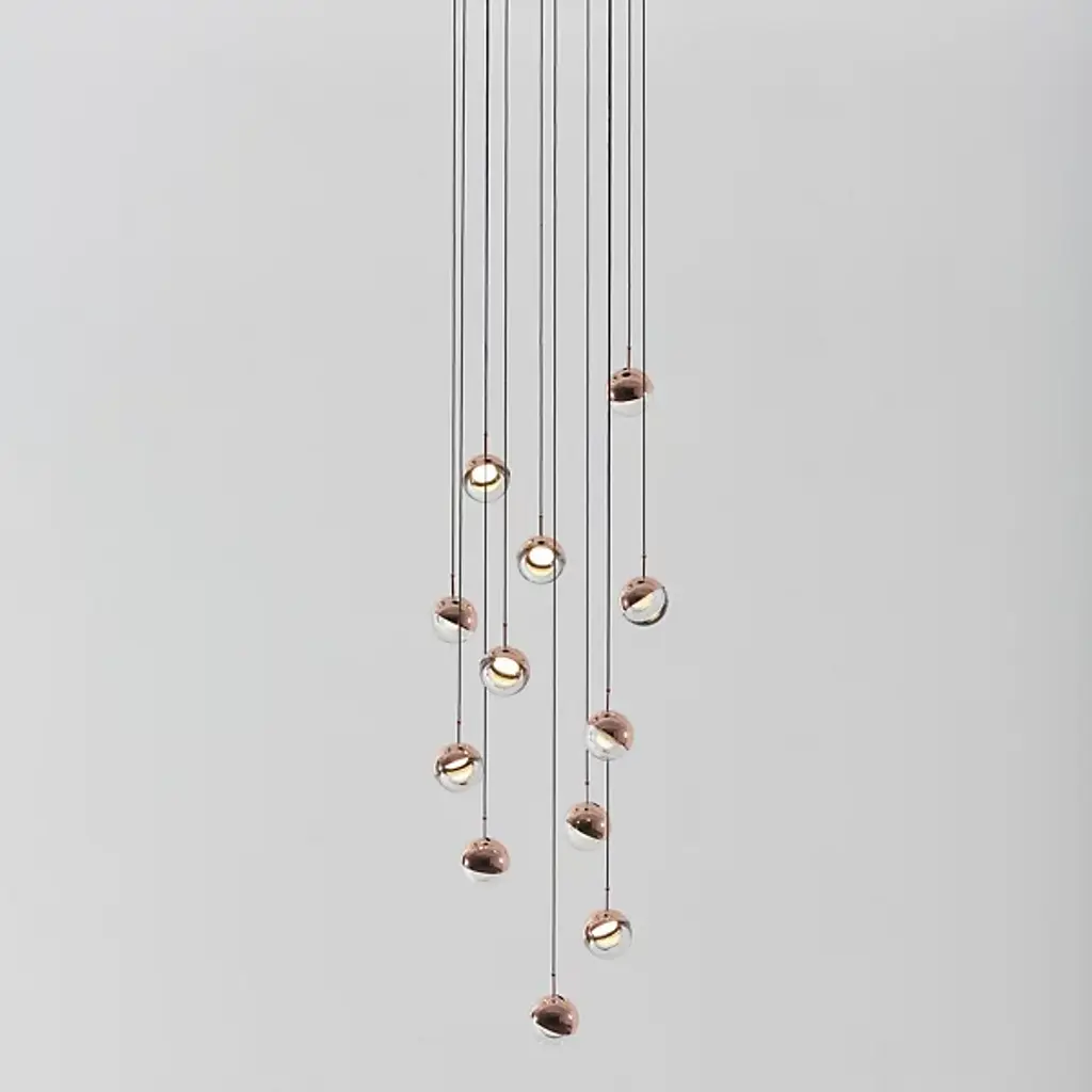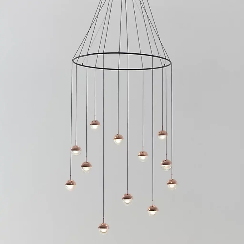 The Seed Design Dora P12 Multi-Light LED Pendant is an ultra chic lighting option that is directly inspired by childhood toys. The designer aimed to create a piece that was versatile and interactive and made the users feel like a kid again. Each glass sphere is independently adjustable and can tilt up to 35 degrees. Leave all at the same length or experiment to find your own custom lighting configuration fit for your space.