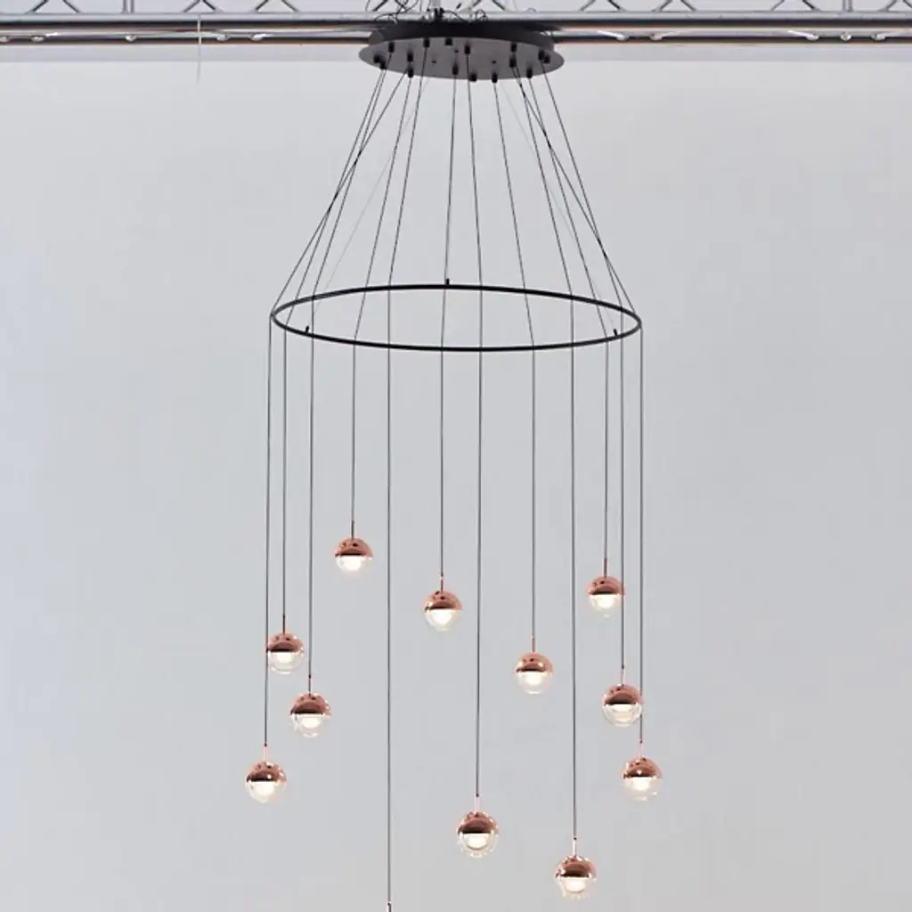 The Seed Design Dora P12 Multi-Light LED Pendant is an ultra chic lighting option that is directly inspired by childhood toys. The designer aimed to create a piece that was versatile and interactive and made the users feel like a kid again. Each glass sphere is independently adjustable and can tilt up to 35 degrees. Leave all at the same length or experiment to find your own custom lighting configuration fit for your space.