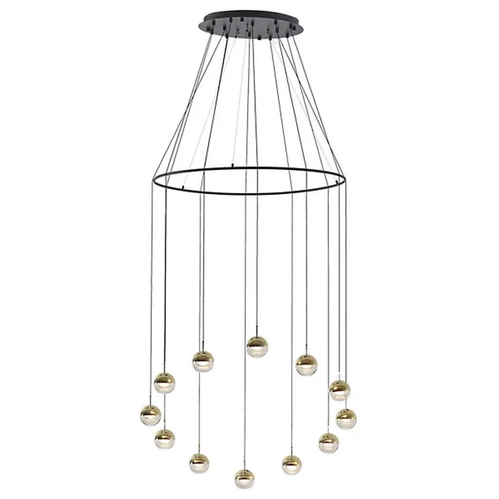 The Seed Design Dora P12 Multi-Light LED Pendant is an ultra chic lighting option that is directly inspired by childhood toys. The designer aimed to create a piece that was versatile and interactive and made the users feel like a kid again. Each glass sphere is independently adjustable and can tilt up to 35 degrees. Leave all at the same length or experiment to find your own custom lighting configuration fit for your space.
