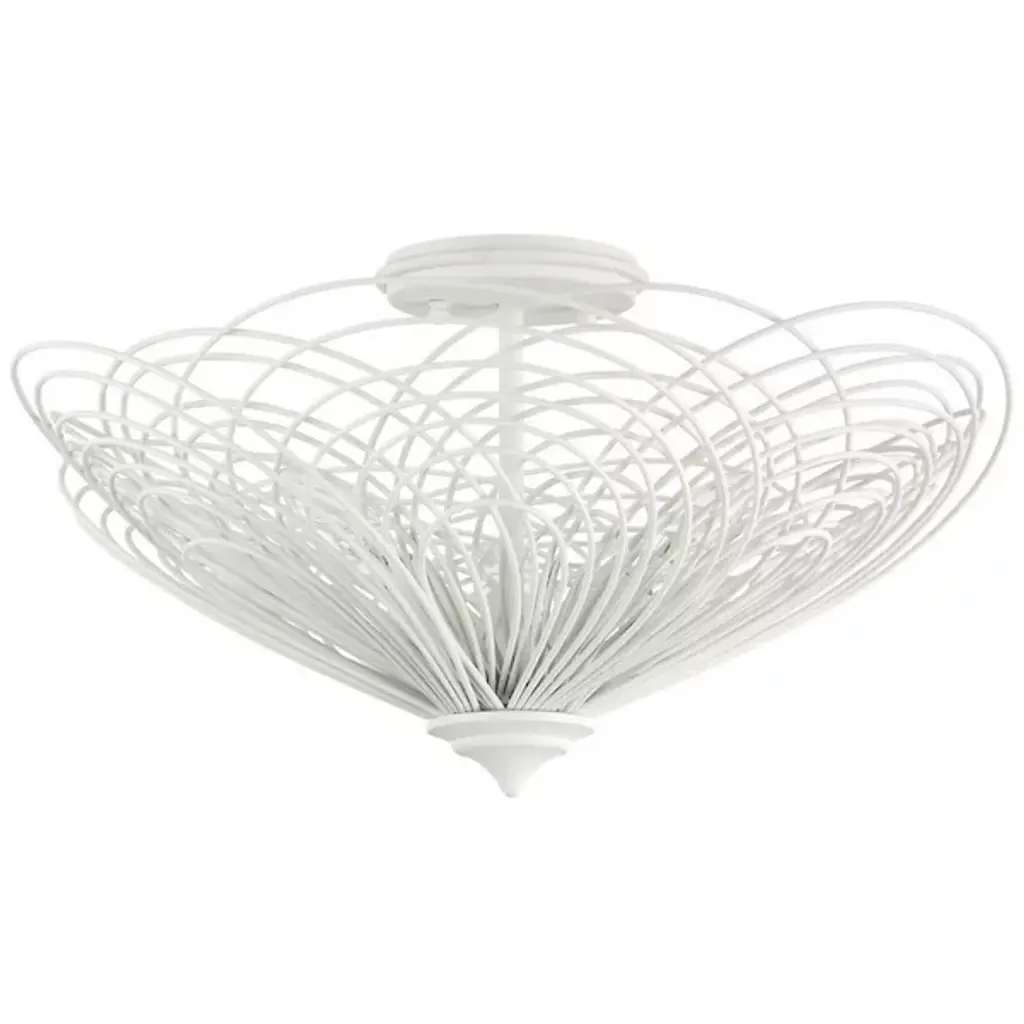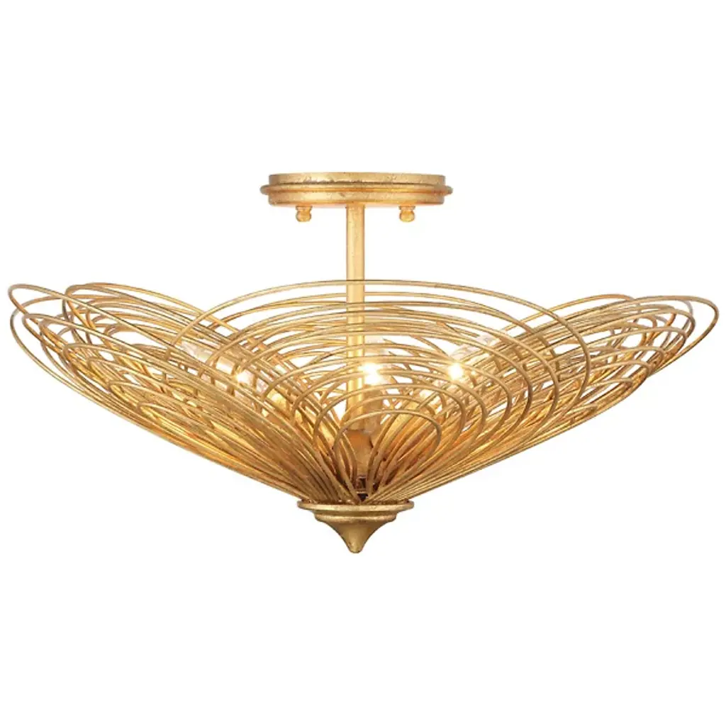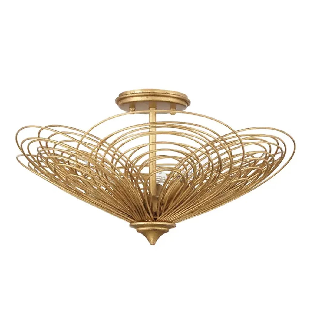 Drawing inspiration from delicate flower petals, the Doral Semi-Flushmount from Crystorama showcases an exquisite piece of art. Its swirling metal rings form an attractive symmetrical shape that enhances any room design, evoking the image of a blooming flower when gazed upon from below. With its warm finish and organic form, this fixture seamlessly complements modern settings, adding a touch of elegance and nature-inspired beauty to your living space.