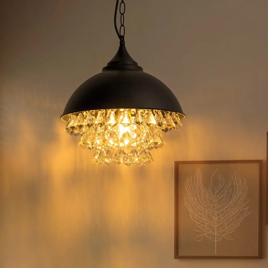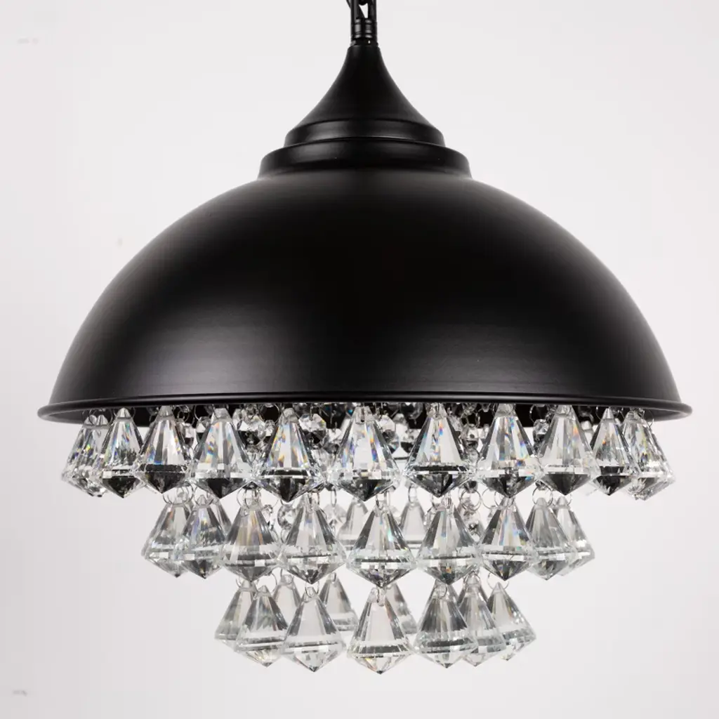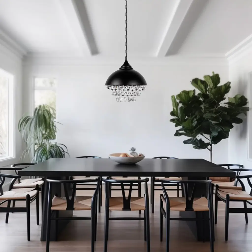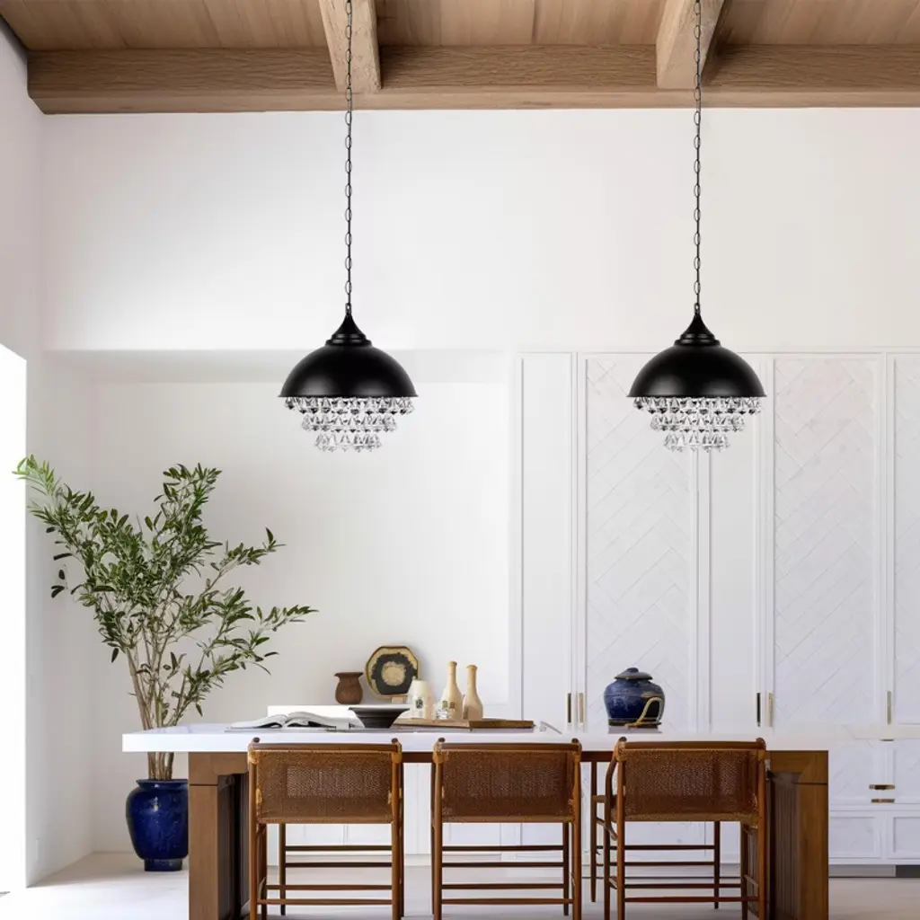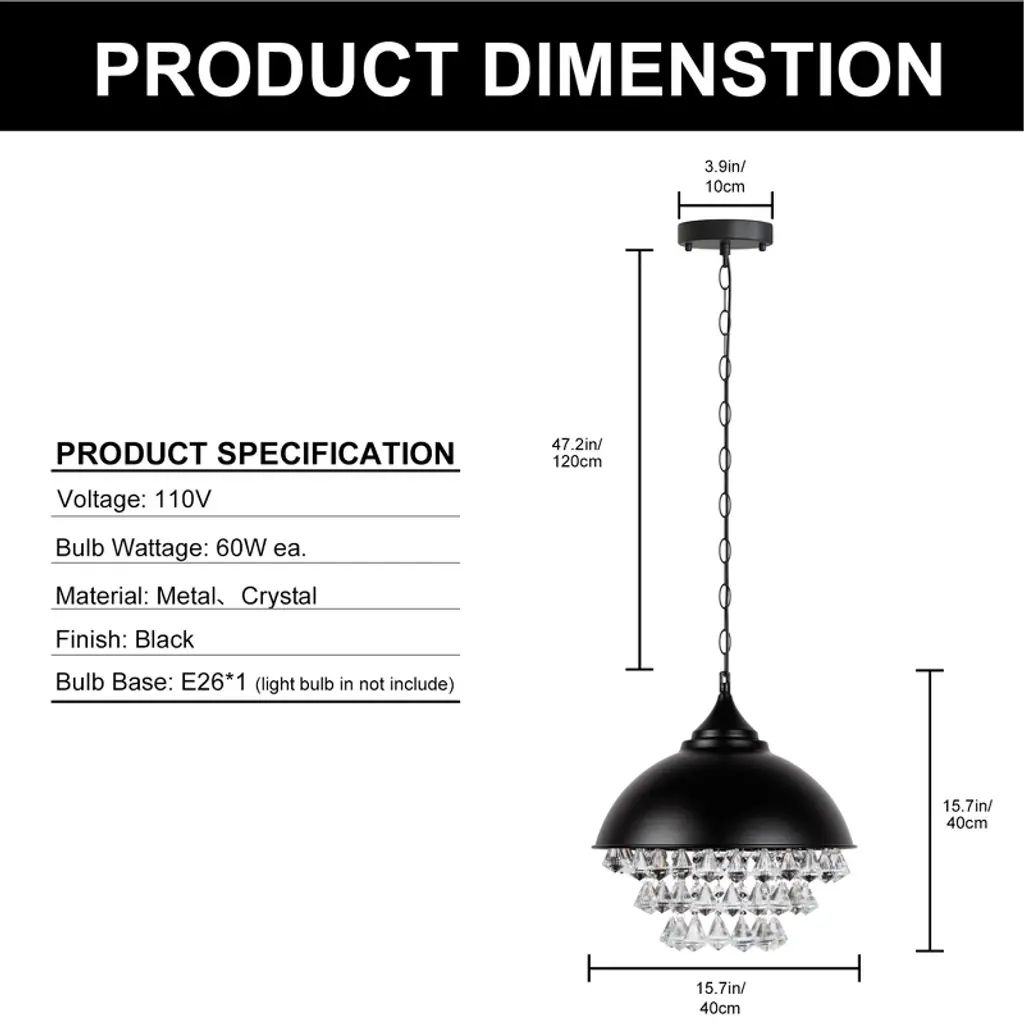 Doresshop 1-light Black Industrial Crystal Pendant Light With Teardrop Shape For Dining Room E26(light Bulbs Not Included)