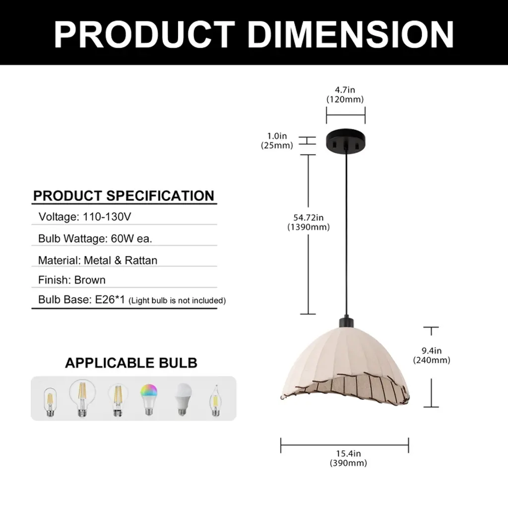 Enhance your space with this charming umbrella-shaped rattan pendant light. The soft, textured shade creates a warm ambiance, while the rustic design adds an artistic flair to any room. Ideal for dining areas, bedrooms, or cafes, this pendant light seamlessly blends style and functionality.