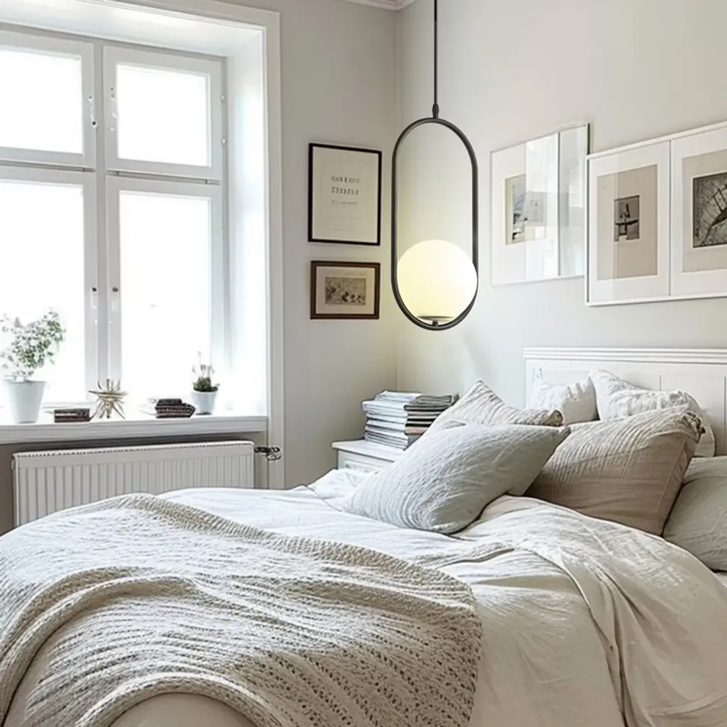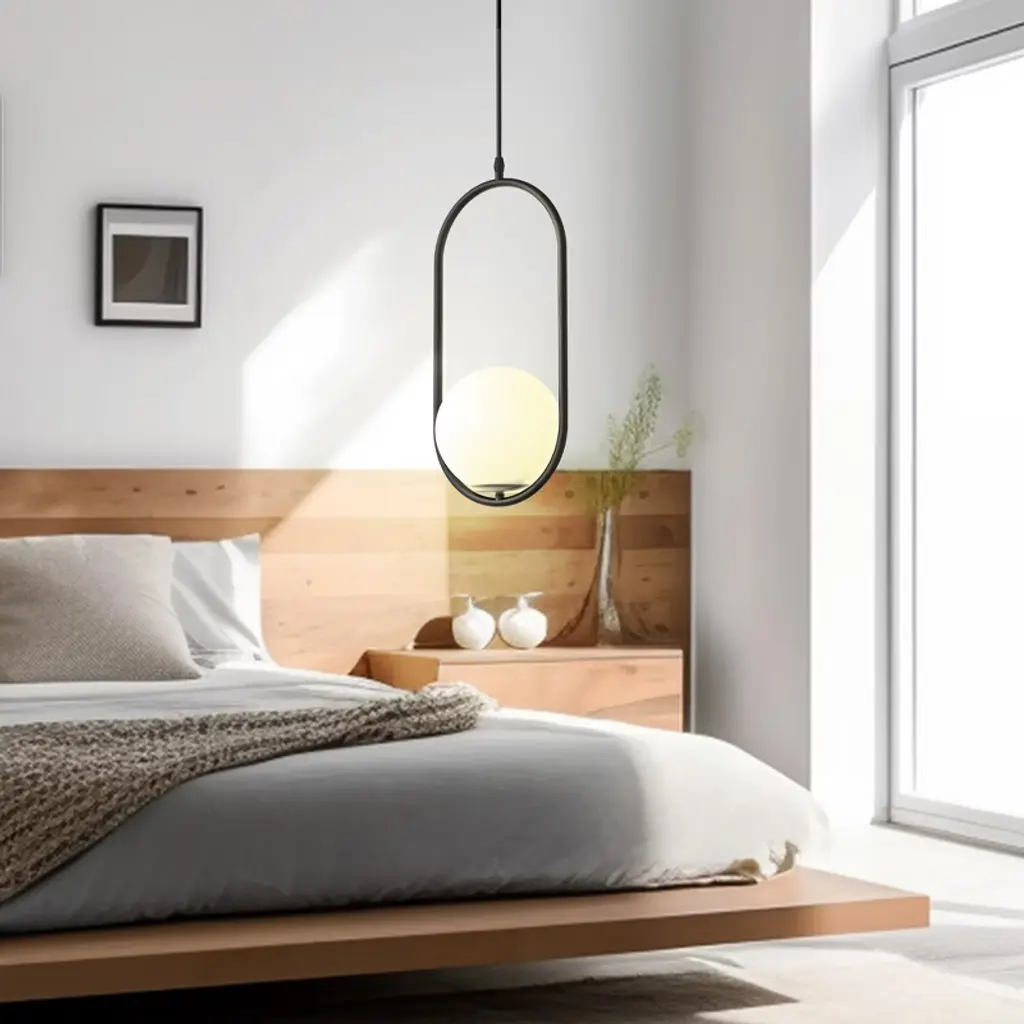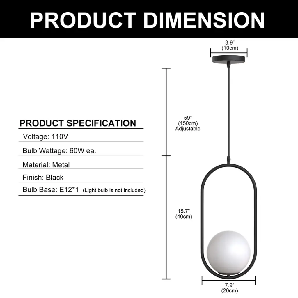 Doresshop 1-light Globle Black Modern Pendant Light With Milk Glass Shade For Kitchen Island Living Room Dining Room