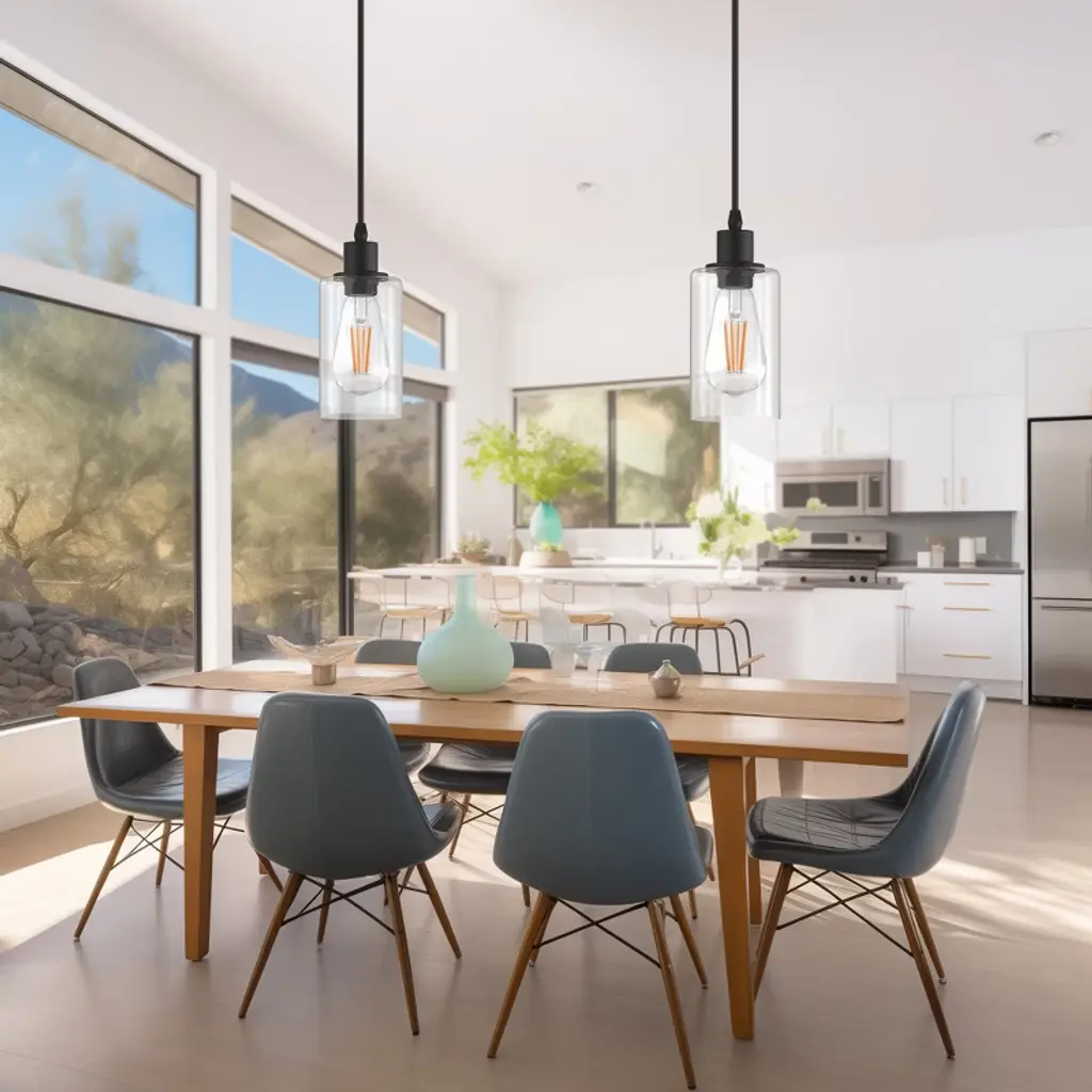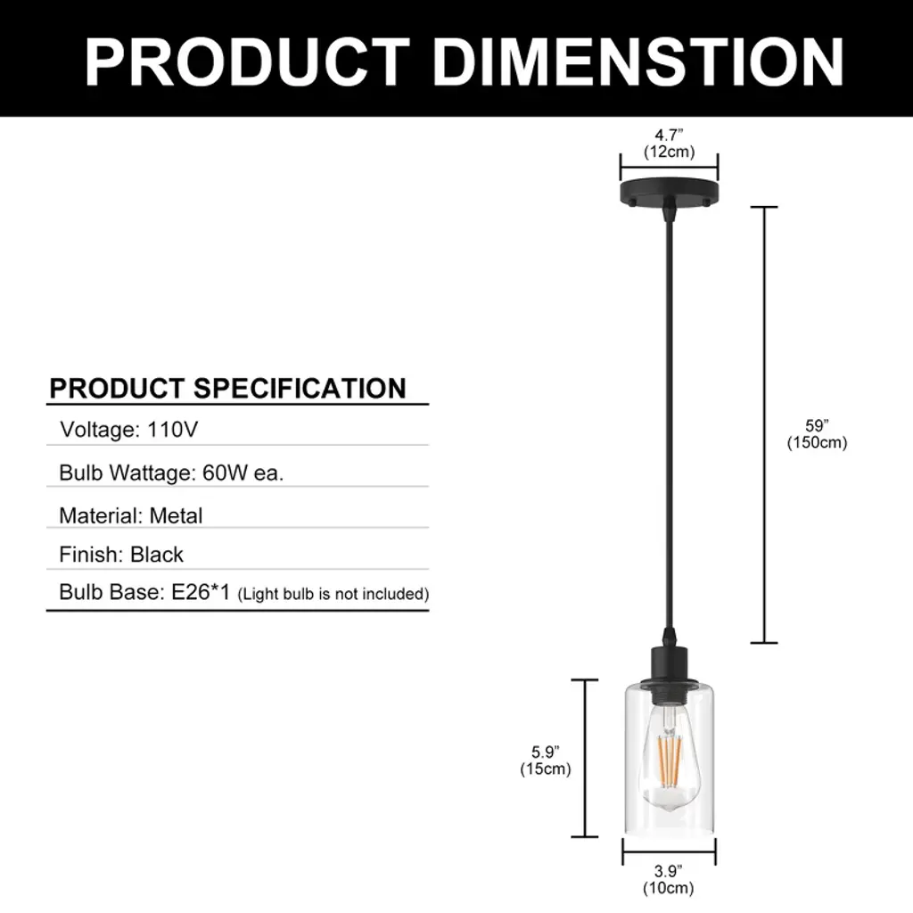 ELEVATE YOUR SPACE WITH THESE STYLISH 1-LIGHT CYLINDER PENDANTS! (2-PACK) Upgrade your home with this 2-PACK 1-LIGHT CYLINDER PENDANT SET, featuring a chic ISLAND DESIGN that combines industrial charm with modern elegance. These fixtures come with CLEAR CYLINDER GLASS SHADES and a sophisticated MATTE BLACK FINISH, offering a sleek and refined look. Perfect for creating a statement above your KITCHEN ISLAND or in your dining area, these pendants offer ADJUSTABLE HANGING LENGTH and SLOPED CEILING ADAPTABILITY for maximum versatility. The included hardware makes assembly a breeze, and the dimmable function lets you set the mood with ease!