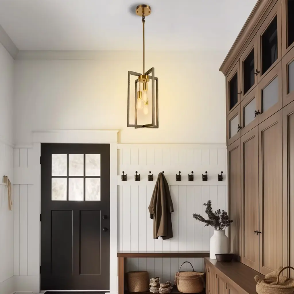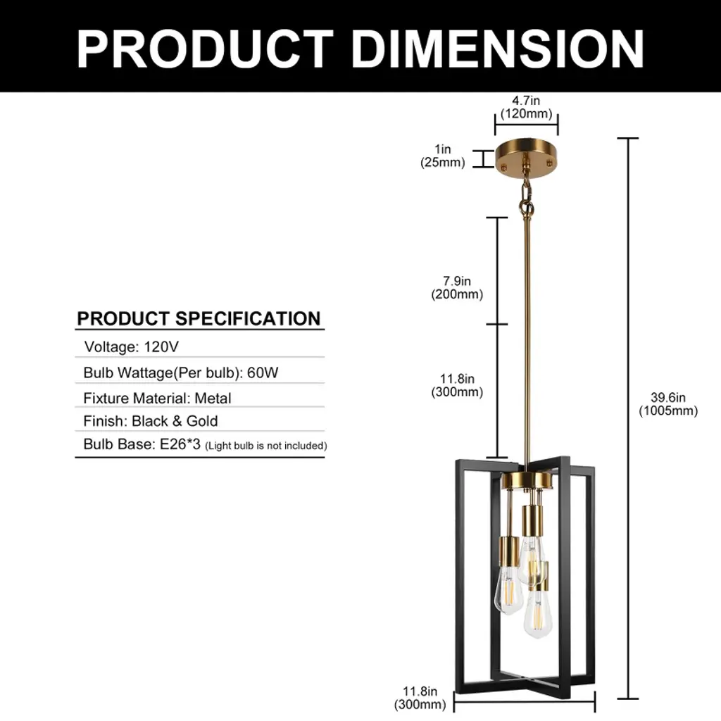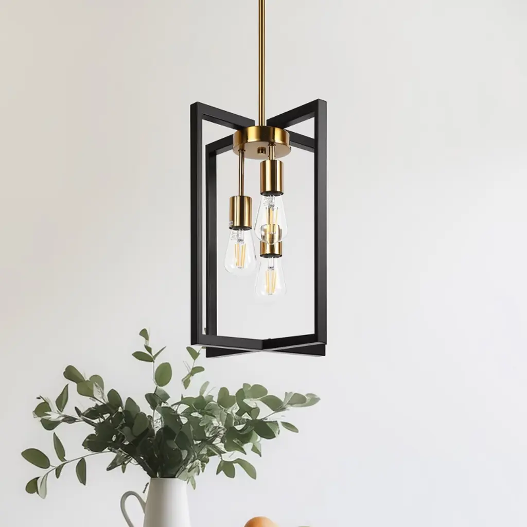 The 3-Light Black and Brass Lantern Style Pendant Light brings timeless charm to your space with its elegant design. Featuring a black and brass finish and a classic lantern shape, this pendant light is perfect for dining rooms, entryways, and living areas. Its sophisticated style complements both modern and traditional interiors, offering a beautiful, functional lighting solution. Please note that light bulbs are not included.