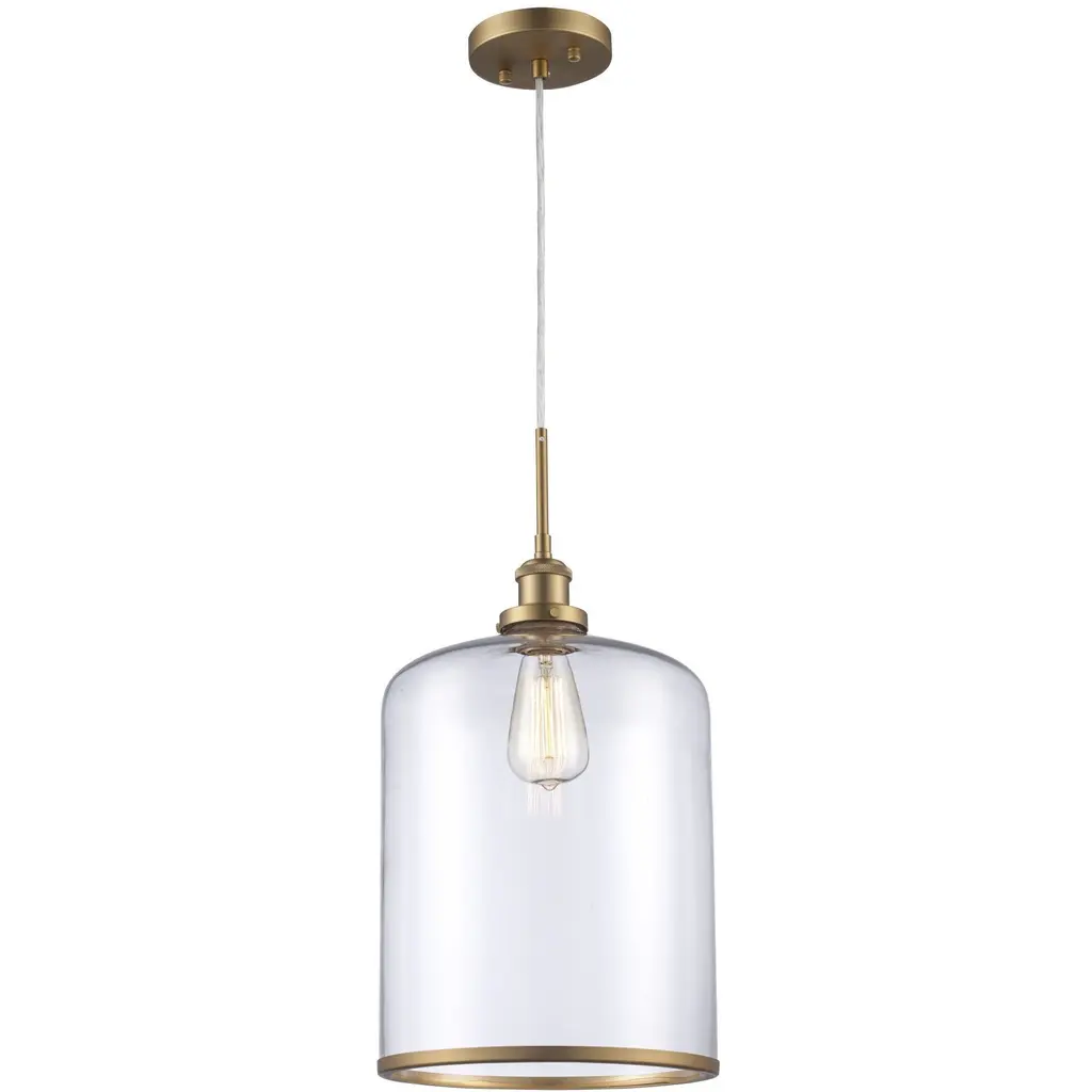 A great lighting solution for nearly any indoor application is a hanging pendant light. The Dorina Collection offers this welcoming 1-Light Transitional fixture that is crafted from metal with a clear glass, jar style shade. This single light indoor pendant includes a circular ceiling canopy, and a single hanging cord, offering flexibility on hanging height placement to best fit your indoor space. With a 10.35” diameter size, this hanging light fixture can be used as a mini pendant, and is ideal for use over a kitchen table, in an entry space, over a reading area or over a nightstand in a bedroom. Array it in multiples over such spaces as a kitchen island or down a hallway for a dramatic statement.
