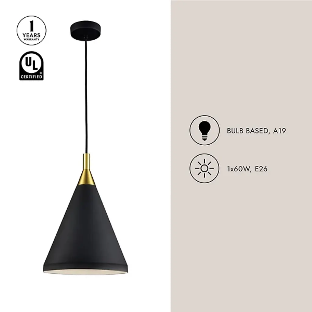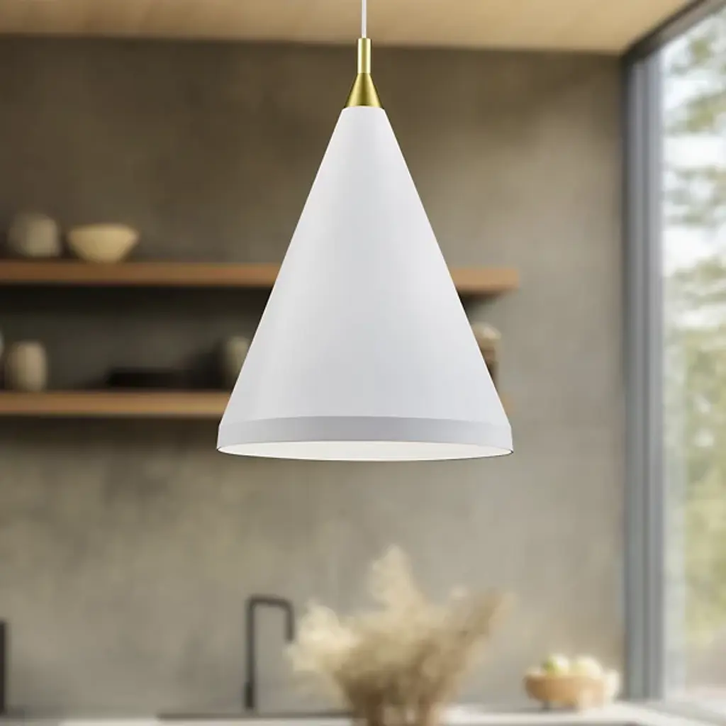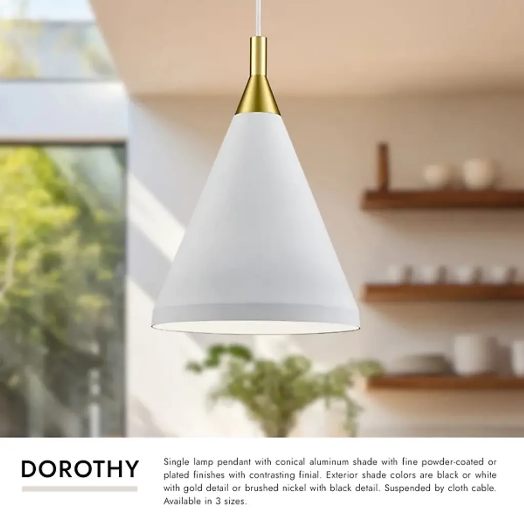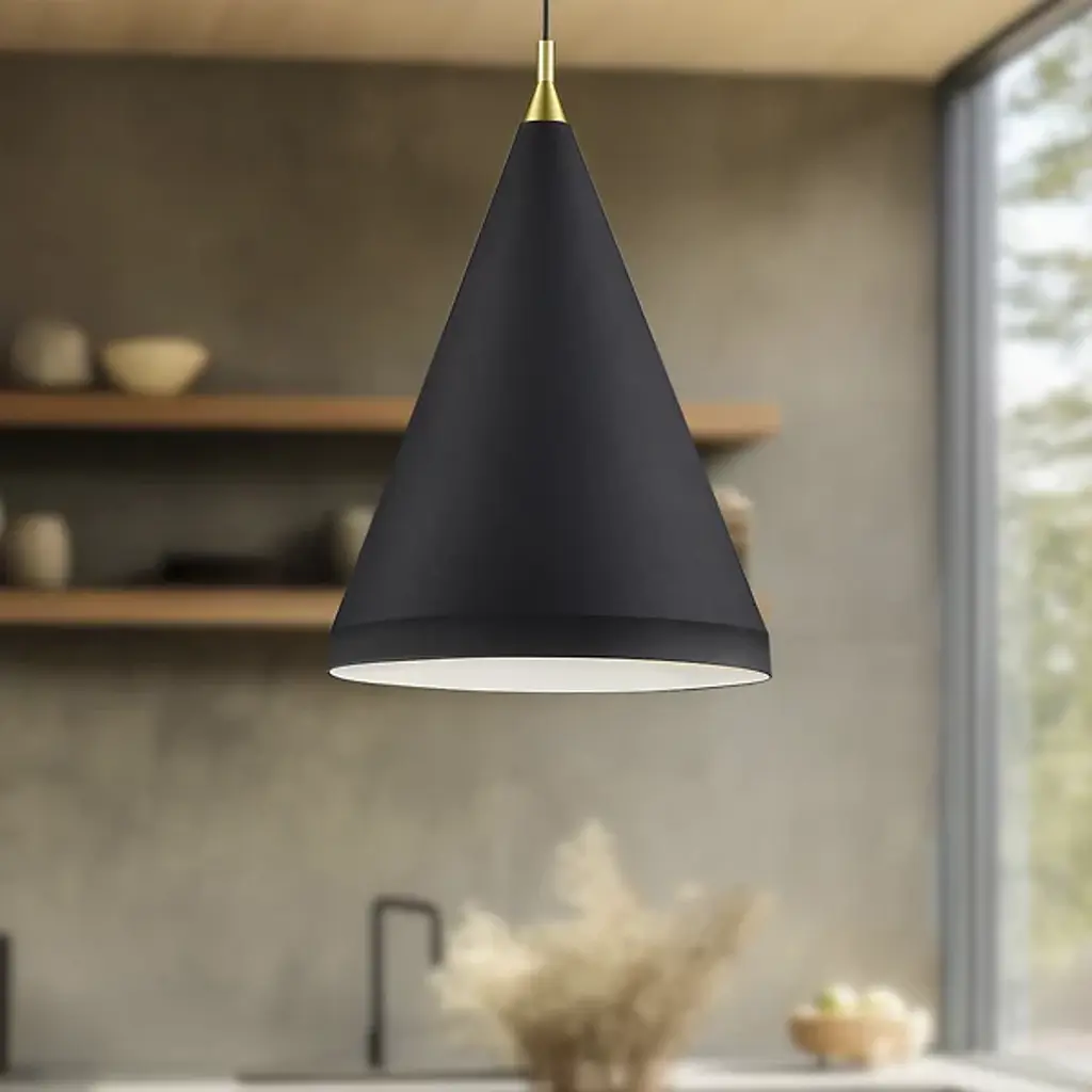 Simple shape, long-lasting life. The Dorothy Tall Pendant from Kuzco has a minimalist aesthetic on its straightforward, cone shape that can work well in your kitchen, dining room, or living room no matter what your established motif is. The style of this product is elevated by its two-tone look; the shade features one finish and the finial another, creating a beautiful contrast. It’s made out of Aluminum so that you can rest assured that it will endure and resist corrosion.