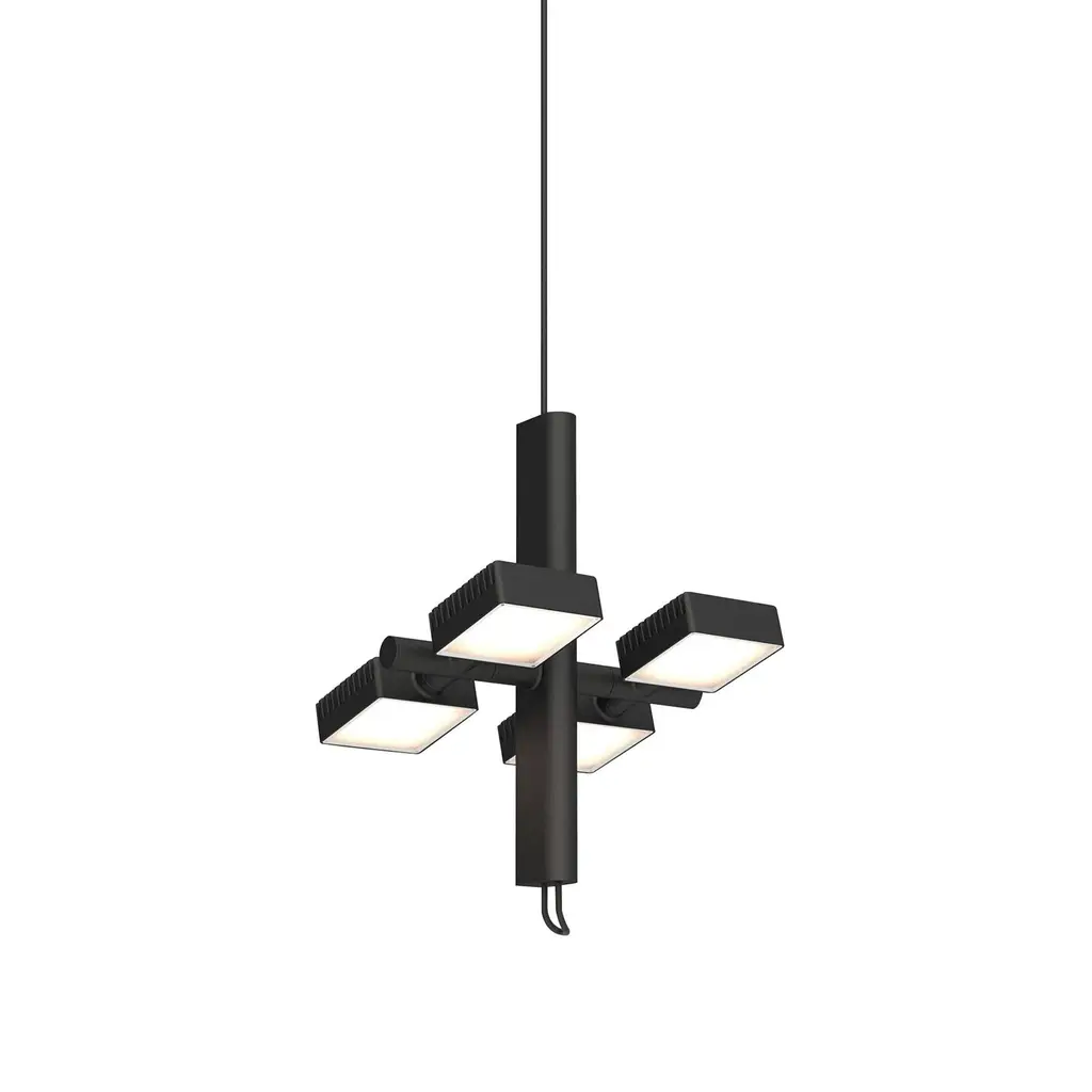Inspired by both French mopeds and airport runway lights, Dorval 01 features 4 square LEDs balanced atop a cross-shaped aluminum frame. Designed by French studio SCMP, this original industrial-edged pendant features a pivoting-head concept that gave way to an expanded Lambert & Fils lighting series. Available in powder-coated or polished aluminum and with a range of lighting specifications, Dorval is handmade at the brand’s Montreal atelier.
