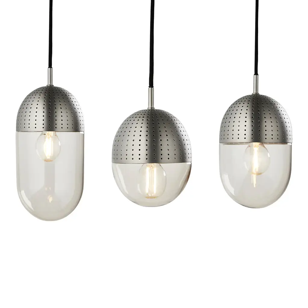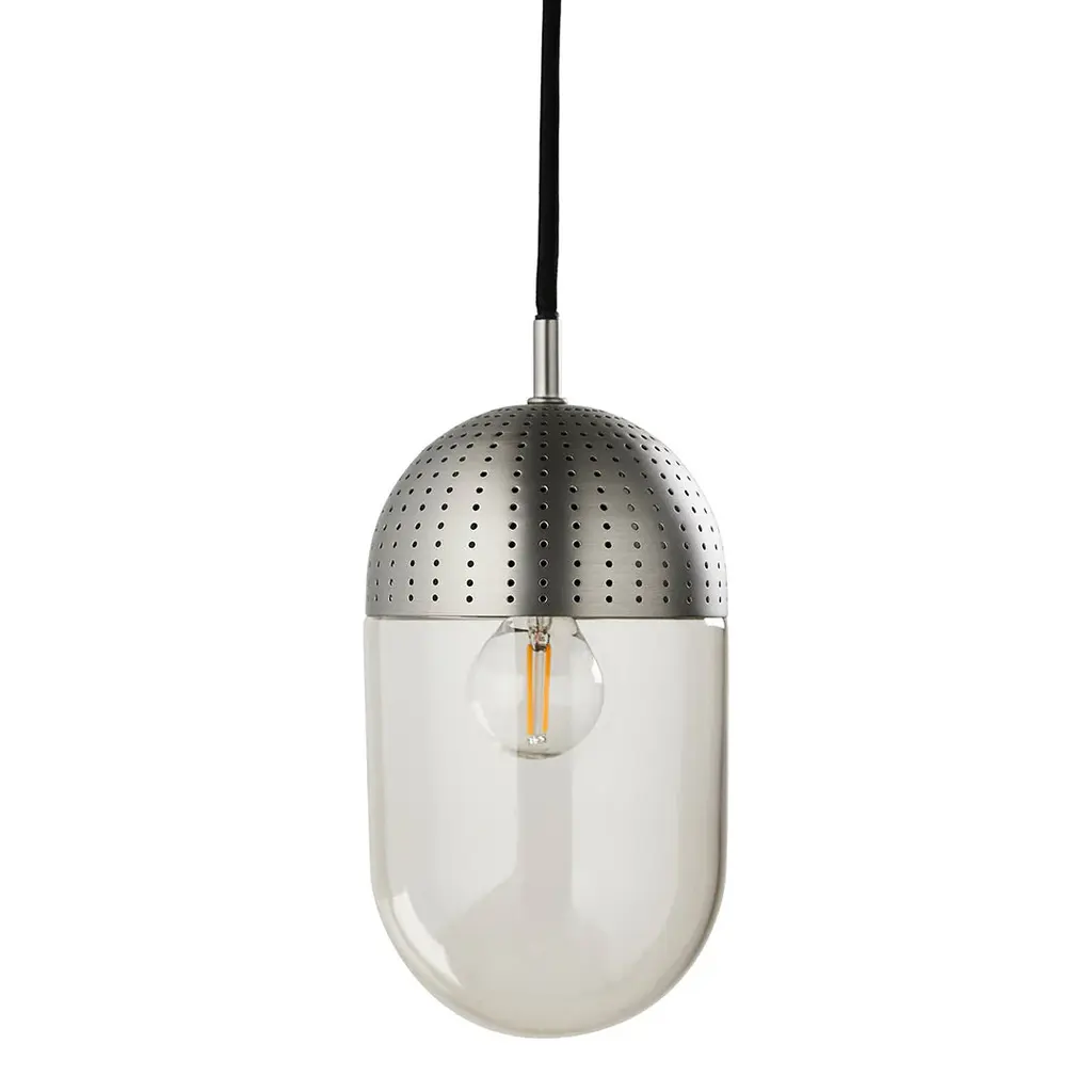 It is inspired by perforated metal and the patterns that the light creates when shining through the holes. The contrast between the coarse perforated metal and the smooth opal glass, makes Dot both a simple and significant pendant. Dot comes in three different sizes to mix and match and to shine both when switched on and off.