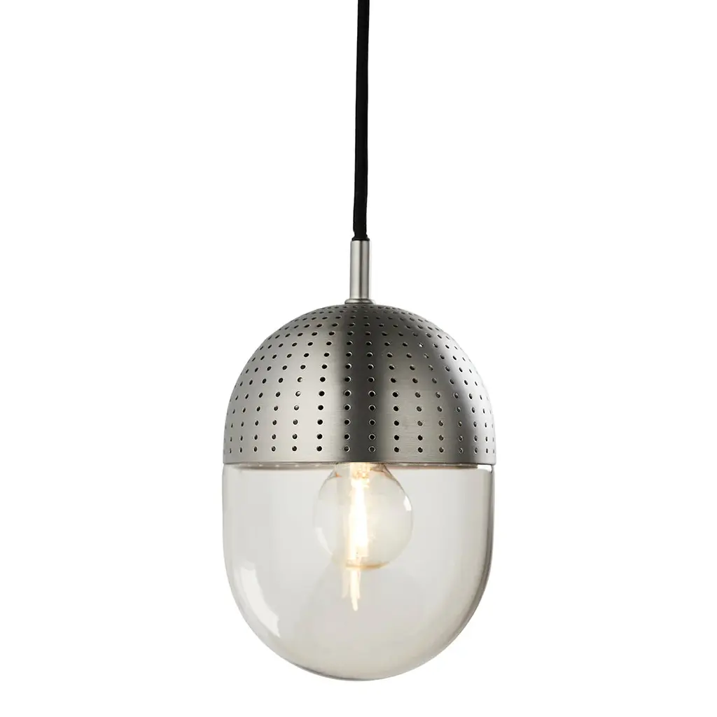 It is inspired by perforated metal and the patterns that the light creates when shining through the holes. The contrast between the coarse perforated metal and the smooth opal glass, makes Dot both a simple and significant pendant. Dot comes in three different sizes to mix and match and to shine both when switched on and off.