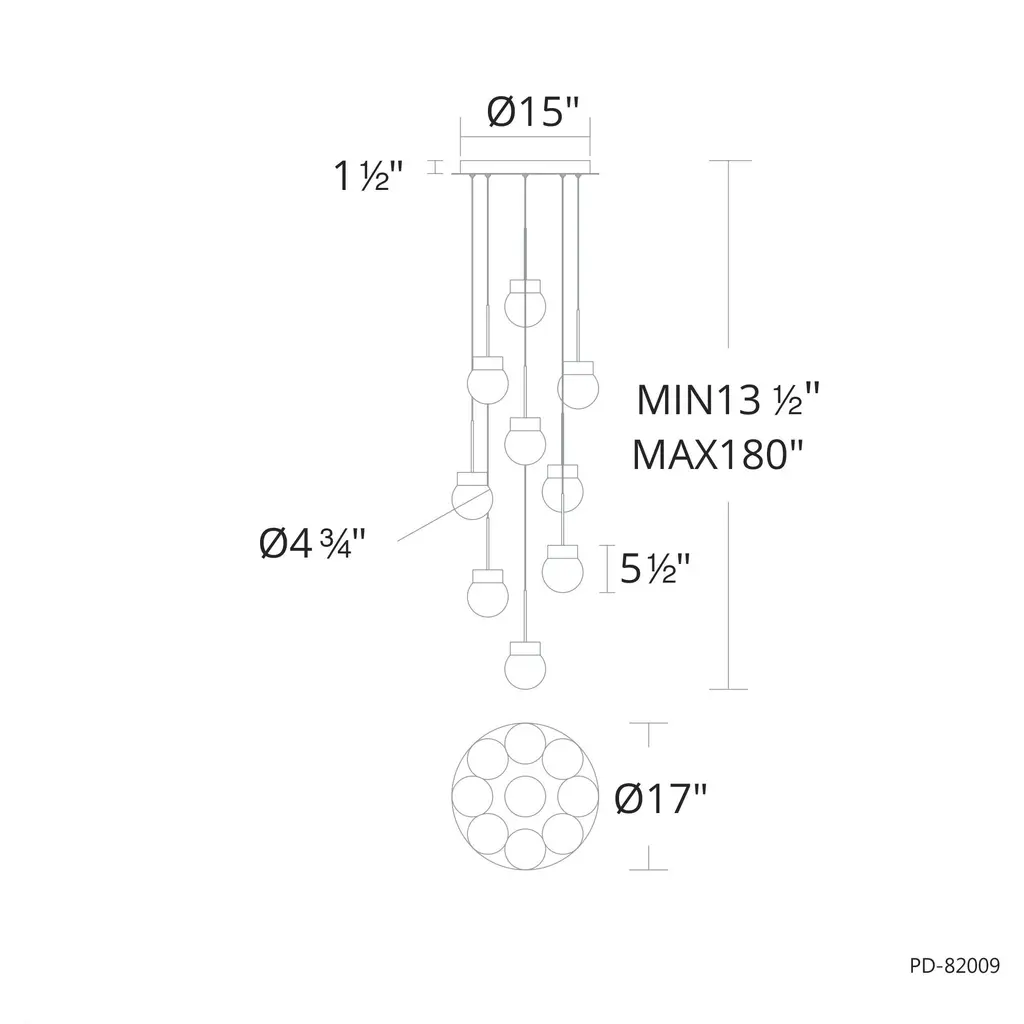 Double Bubble 9 Light 17in LED Round Multi-Light Pendant 3000K in Black