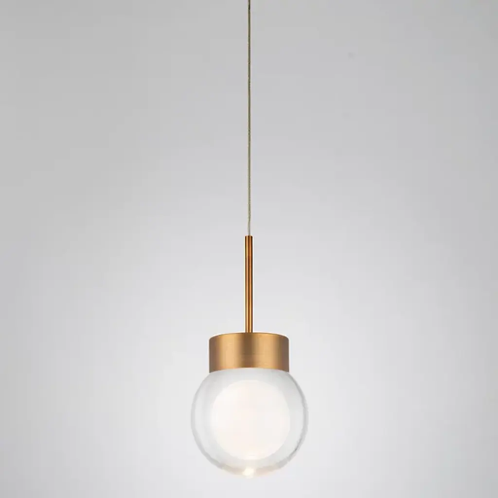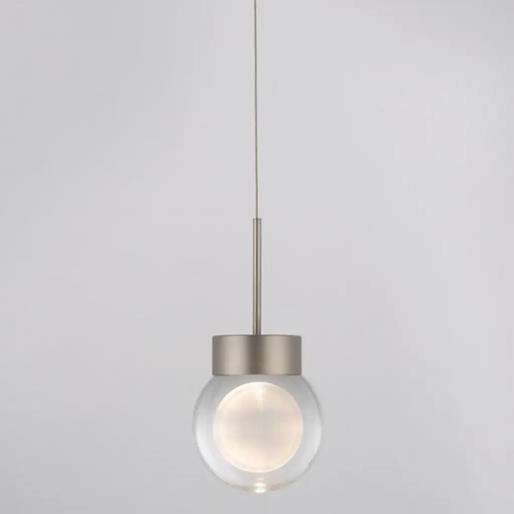 Bask in the gentle glow of the simple and stylish Double Bubble LED Mini Pendant from Modern Forms. A minimalist fixture with older deco notes, it uses a round canopy and slim cable to drop a cylindrical housing that holds an integrated LED under two concentric, laser-etched crystal globes. The lamping is durable and damp-rated, while the multiple bubble layers diffuse a softer light below that’s still strong enough to warm its surroundings.
