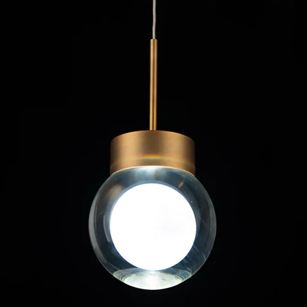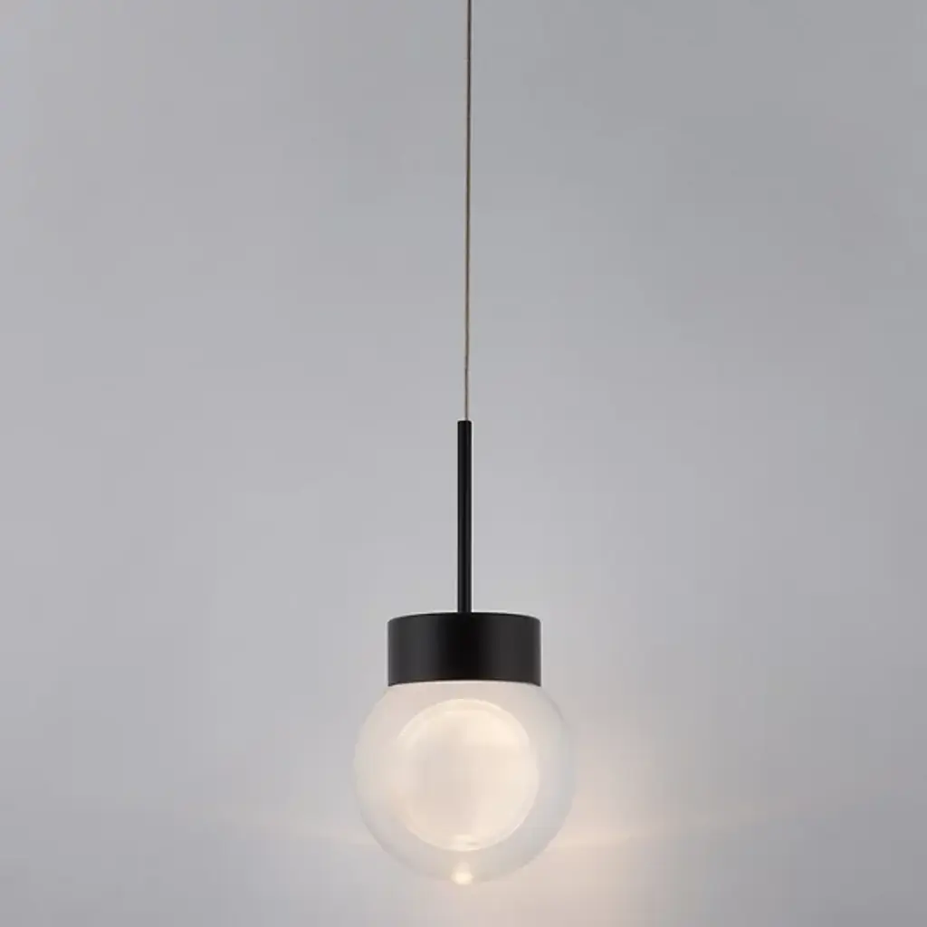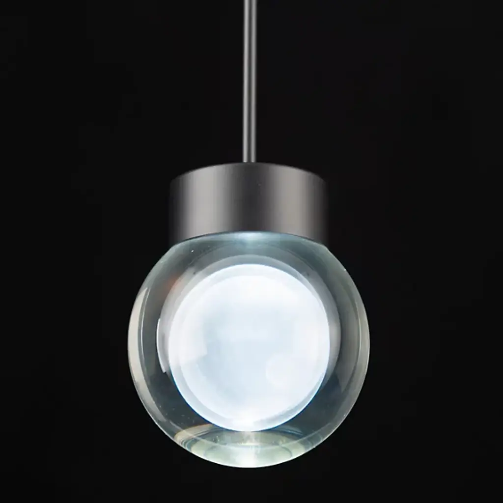 Bask in the gentle glow of the simple and stylish Double Bubble LED Mini Pendant from Modern Forms. A minimalist fixture with older deco notes, it uses a round canopy and slim cable to drop a cylindrical housing that holds an integrated LED under two concentric, laser-etched crystal globes. The lamping is durable and damp-rated, while the multiple bubble layers diffuse a softer light below that’s still strong enough to warm its surroundings.