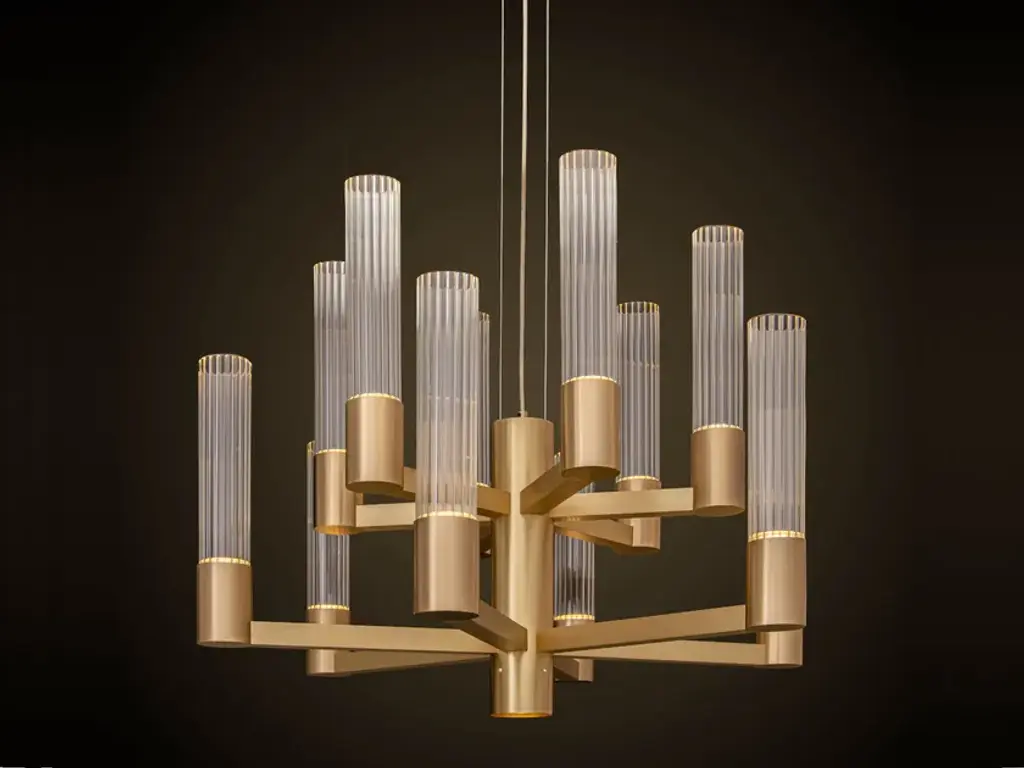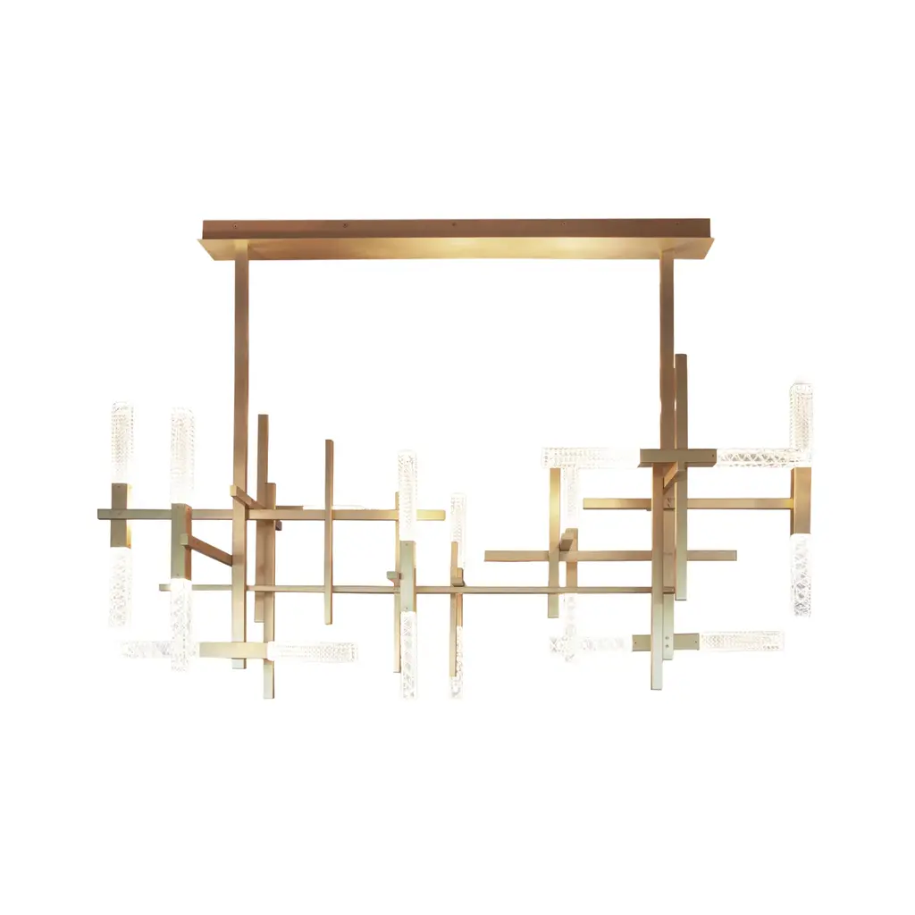 Elevate your space with Mikado Suspension, a collection of luxurious "jewel" lamps. Crafted with rectangular brass tubes and engraved crystal cubes, each piece is meticulously designed with a precise and balanced scheme. The LED sources highlight the crystal's beauty, making it a high-performance decorative product compatible with home automation.
