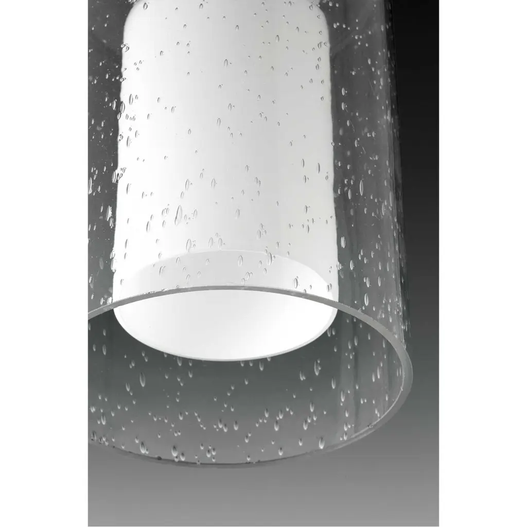 Create a focal point with the Double Glass pendant's vintage-inspired silhouette. Oversized clear seeded outer glass with an inner etched white glass shade complements linear forms in a Graphite finish. Graphite finish.