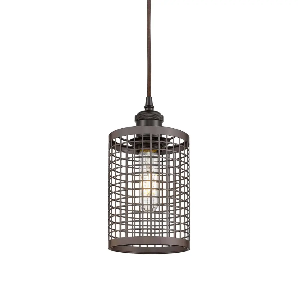 Downtown Mesh 1 Light 4 Inch Flat Bronze Pendant Ceiling Light In Adjustable Cord, Exposed Bulb, E26 Incandescent