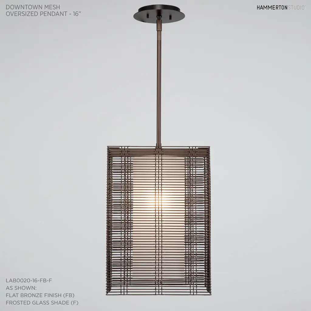 Downtown Mesh Oversized Pendant-Rod Suspended-16-Gilded Brass-Frosted Glass-Threaded Rod Suspension-LED