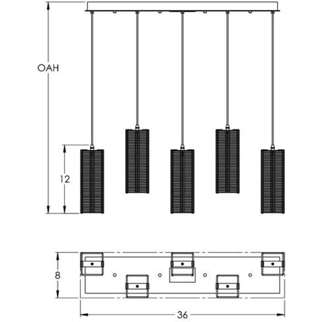 Downtown Mesh Led Flat Bronze Linear Pendant Ceiling Light In 3000k Led, Adjustable Cord, Frosted, Multi-Port