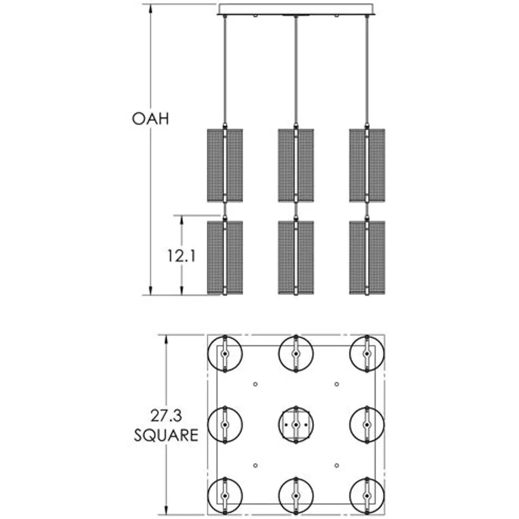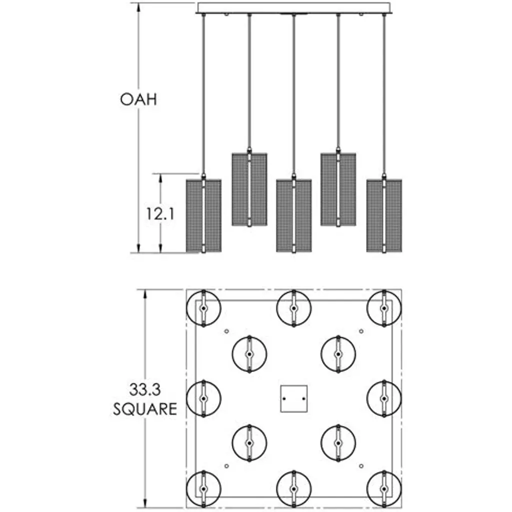 Downtown Mesh Led Metallic Beige Silver Multi-Pendant Ceiling Light In 3000k Led, Frosted, Square Multi-Port