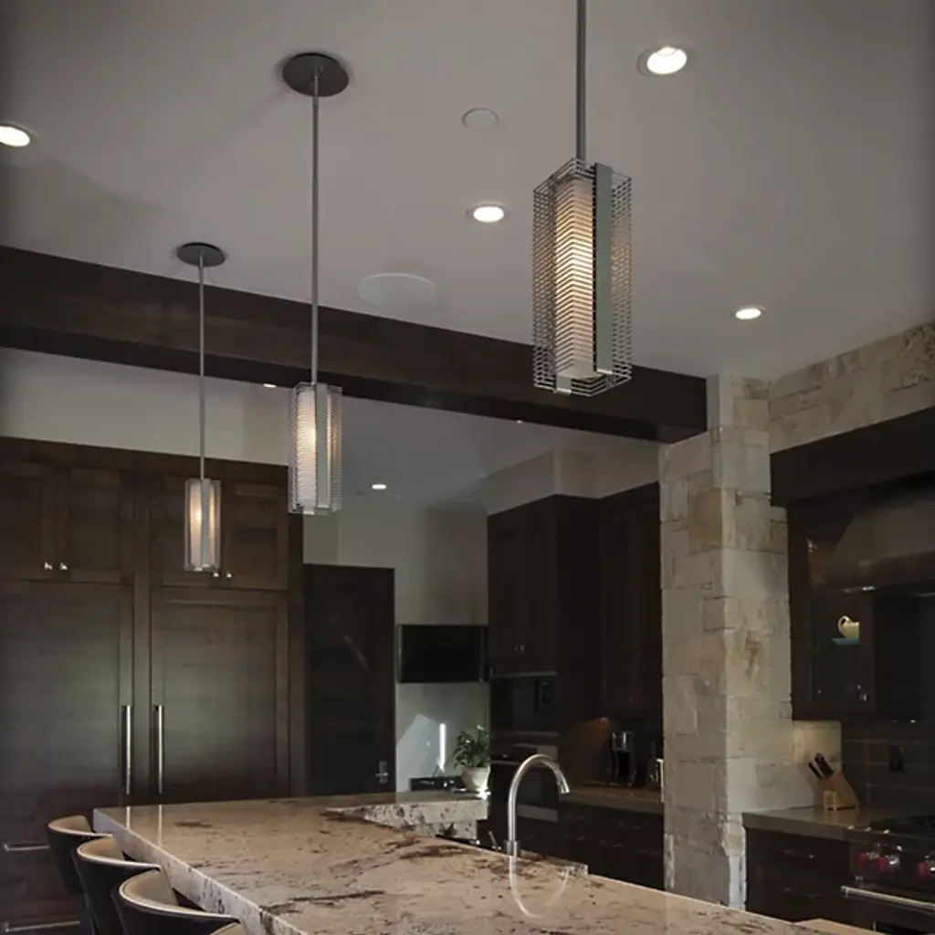 A straightforward yet sophisticated look. The Downtown Mesh Pendant from Hammerton Studio has an industrial aesthetic that works well in contemporary dining areas and kitchens. Its bulb is surrounded by a rectangular shade made out of woven steel mesh, strong enough to earn the nickname "rock crusher screen." This pendant has a rugged yet airy and elegant appearance thanks to the efforts of the skilled artisans who craft each piece by hand.