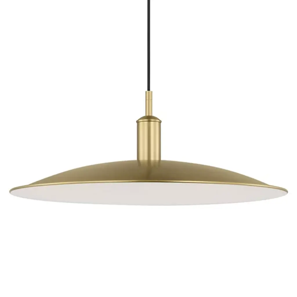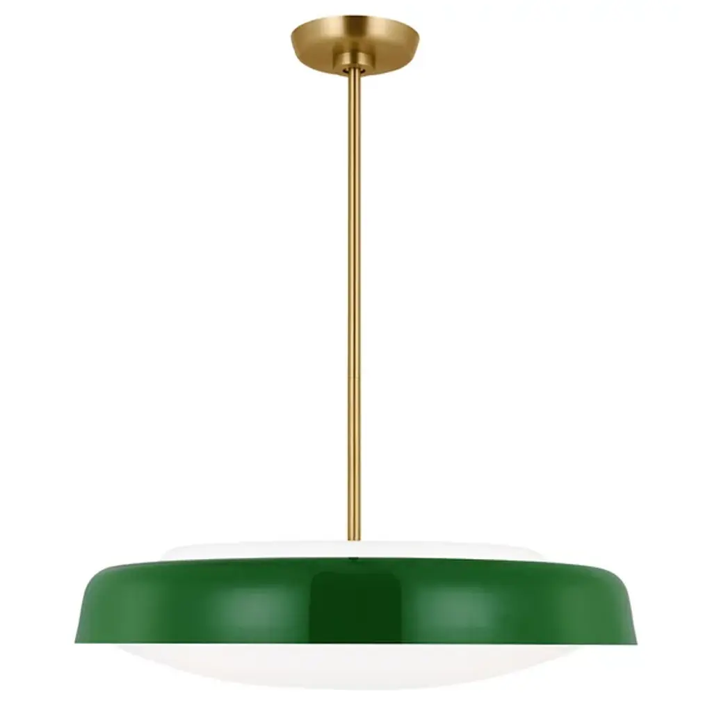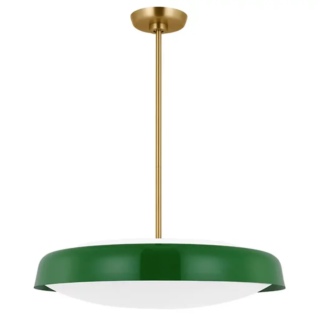 The Draper Extra Large Pendant from Visual Comfort Studio is designed by Kate Spade New York. Its extra-large profile makes a bold, contemporary design statement. Crafted from durable steel, this pendant exudes versatility. The shade, crafted from milk glass, emanates a beautiful glow, creating a blend of style and warmth. Dimmable when used with a separately sold ELV dimmer, you can adjust the brightness to suit your needs. This sloped ceiling adaptable fixture brings overhead illumination to living rooms, kitchens, and more.