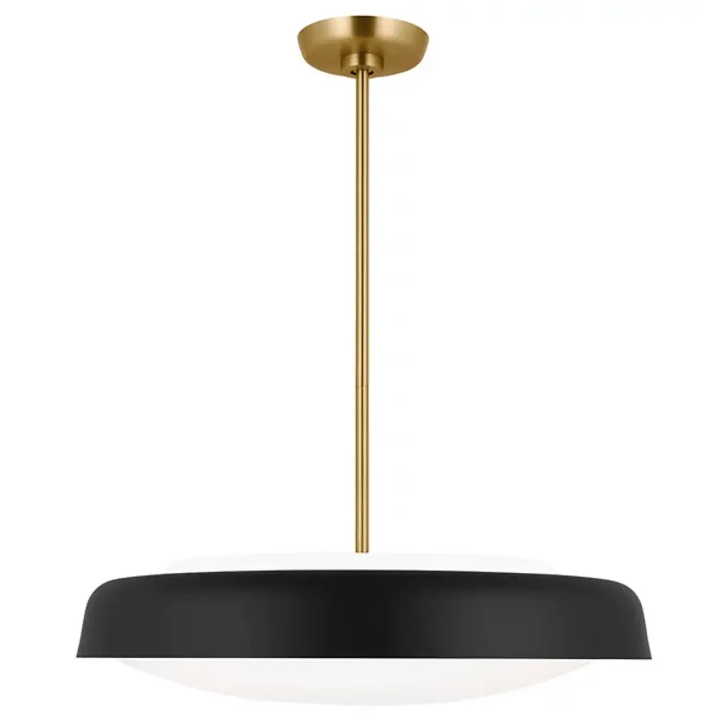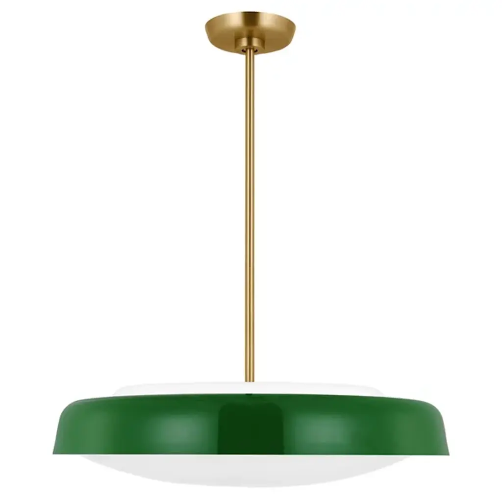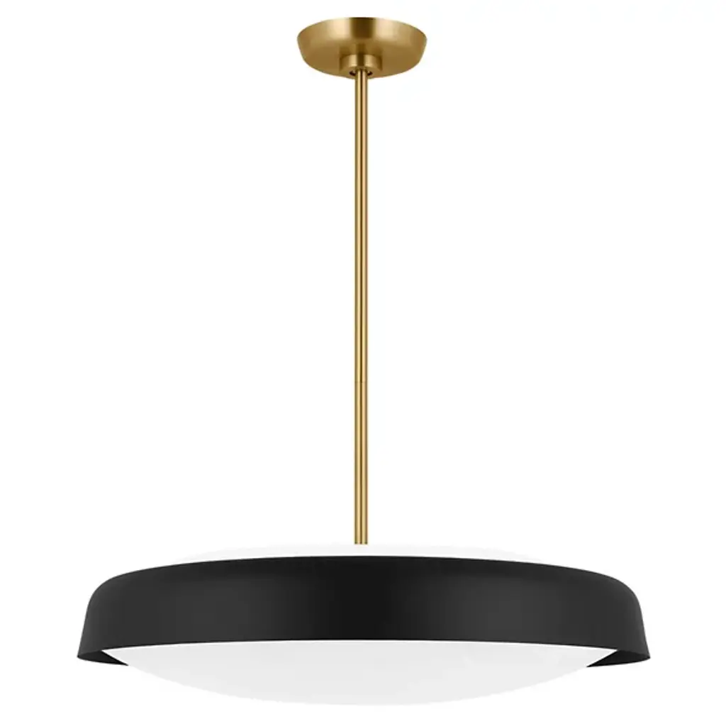 The Draper Extra Large Pendant from Visual Comfort Studio is designed by Kate Spade New York. Its extra-large profile makes a bold, contemporary design statement. Crafted from durable steel, this pendant exudes versatility. The shade, crafted from milk glass, emanates a beautiful glow, creating a blend of style and warmth. Dimmable when used with a separately sold ELV dimmer, you can adjust the brightness to suit your needs. This sloped ceiling adaptable fixture brings overhead illumination to living rooms, kitchens, and more.