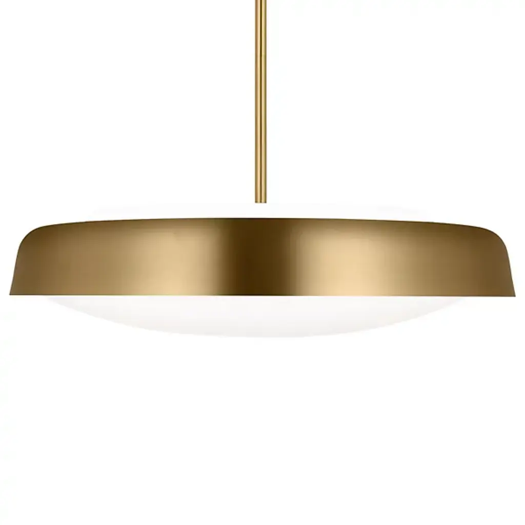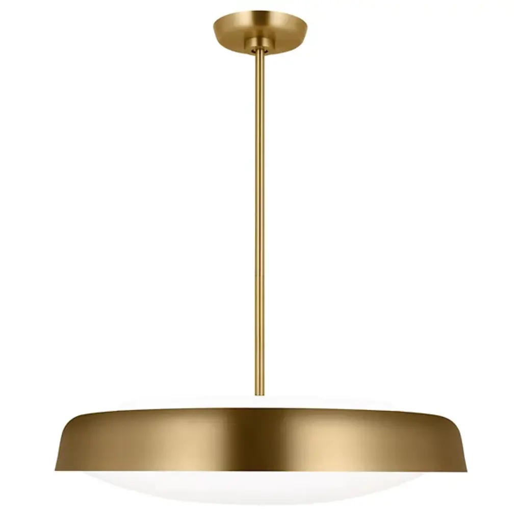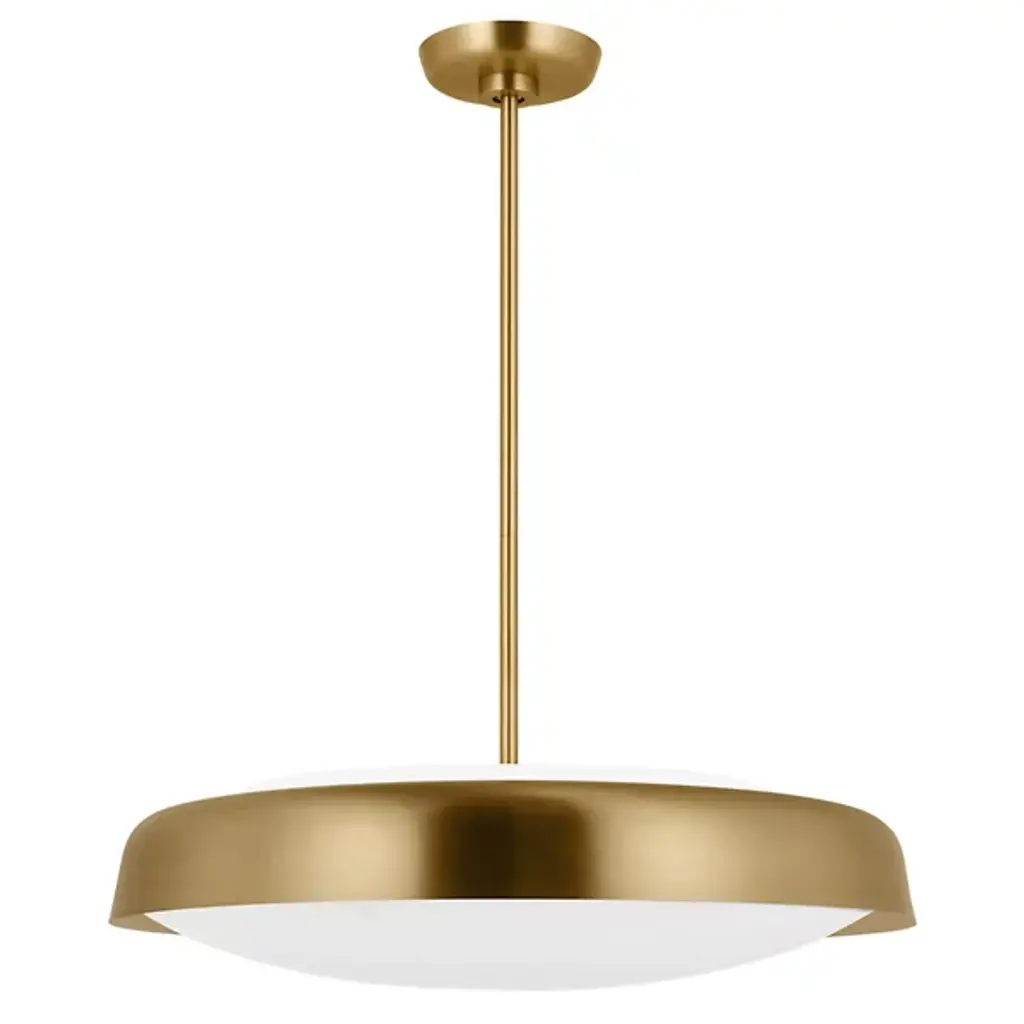 The Draper Extra Large Pendant from Visual Comfort Studio is designed by Kate Spade New York. Its extra-large profile makes a bold, contemporary design statement. Crafted from durable steel, this pendant exudes versatility. The shade, crafted from milk glass, emanates a beautiful glow, creating a blend of style and warmth. Dimmable when used with a separately sold ELV dimmer, you can adjust the brightness to suit your needs. This sloped ceiling adaptable fixture brings overhead illumination to living rooms, kitchens, and more.