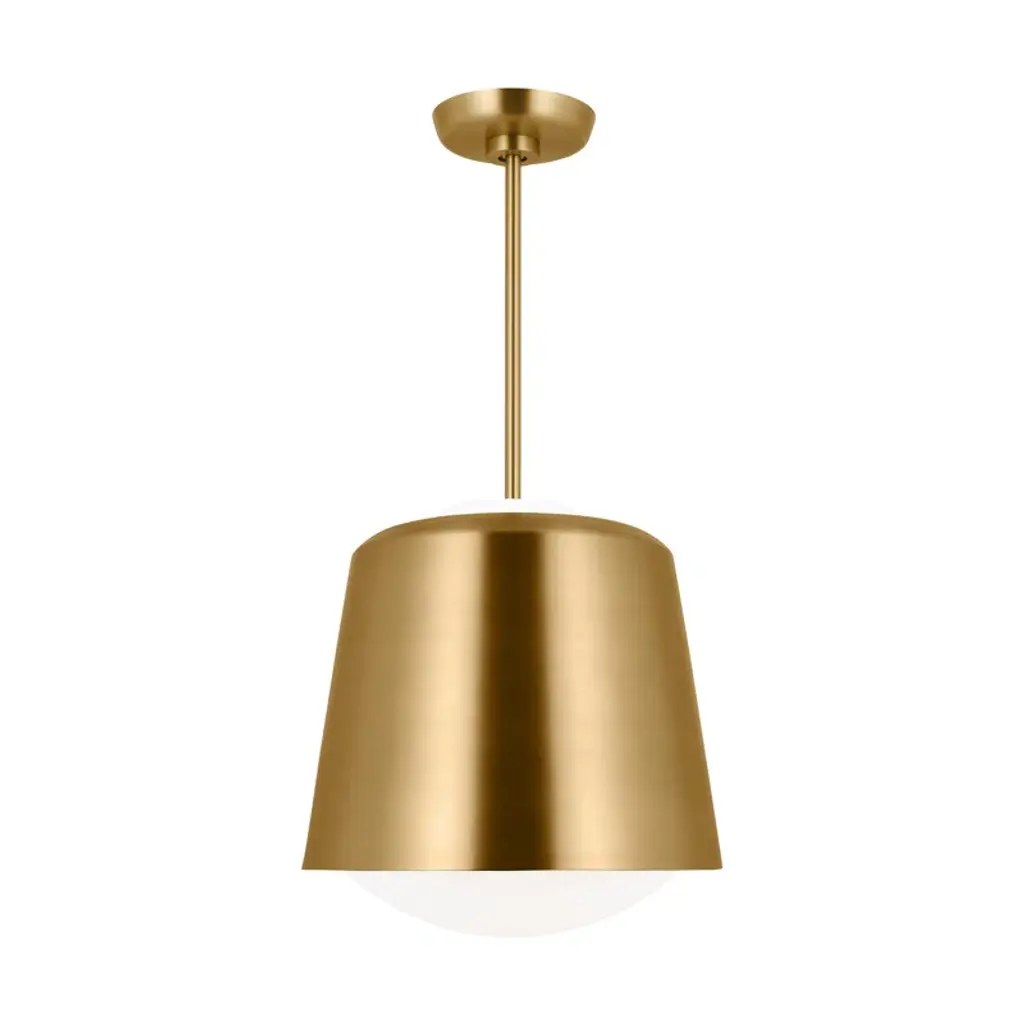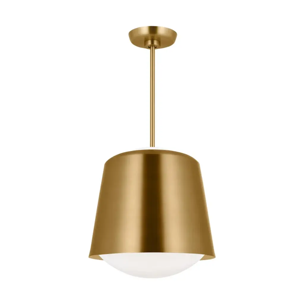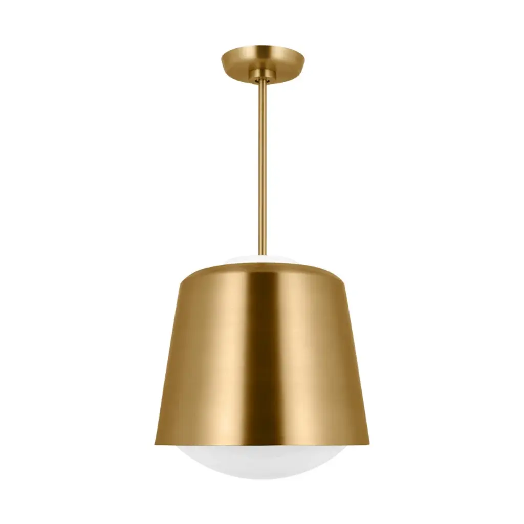 The Draper series by Kate Spade New York is a modern and sophisticated lighting fixture that adds a touch of elegance to any room. With its sleek metal design and high-quality materials, this series is the perfect blend of style and functionality. The metal shade rests on milk glass, allowing light to illuminate both up and down.