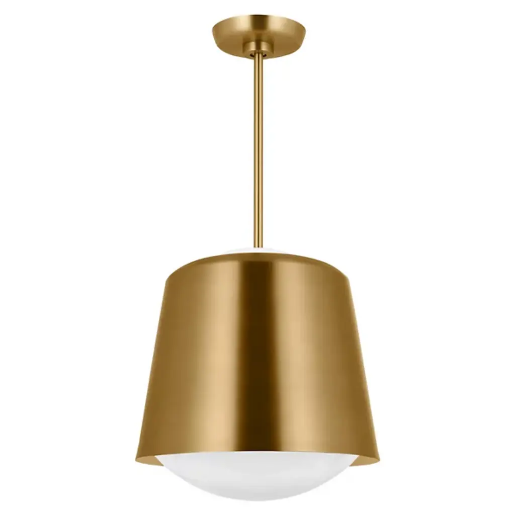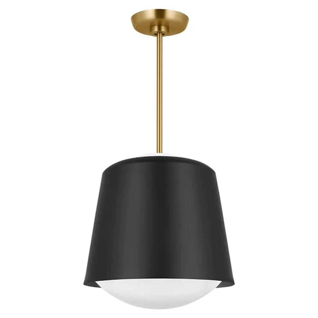 The Draper Small Pendant from Visual Comfort Studio is designed by Kate Spade New York. This pendant features a durable steel framework for lasting performance and a stately appearance. The glass shade adds a touch of elegance and allows the pendant to illuminate your space with a gorgeous glow. Draper boasts dimmable capabilities when used with an ELV dimmer, letting you easily adjust the brightness level of the LED. Plus, your pendant is sloped ceiling adaptable, offering versatility.