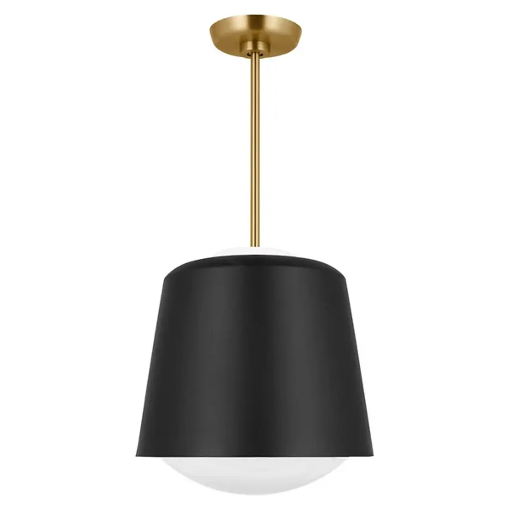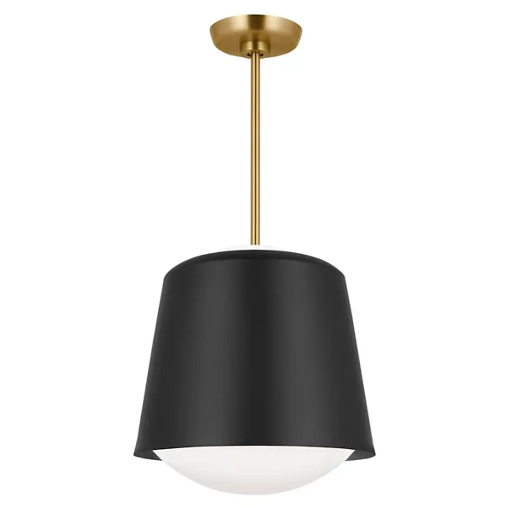 The Draper Small Pendant from Visual Comfort Studio is designed by Kate Spade New York. This pendant features a durable steel framework for lasting performance and a stately appearance. The glass shade adds a touch of elegance and allows the pendant to illuminate your space with a gorgeous glow. Draper boasts dimmable capabilities when used with an ELV dimmer, letting you easily adjust the brightness level of the LED. Plus, your pendant is sloped ceiling adaptable, offering versatility.
