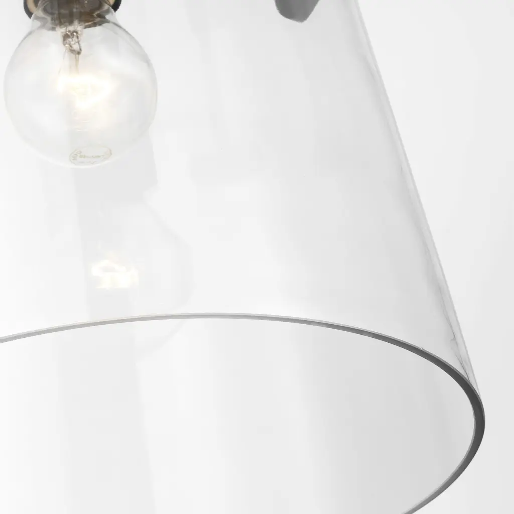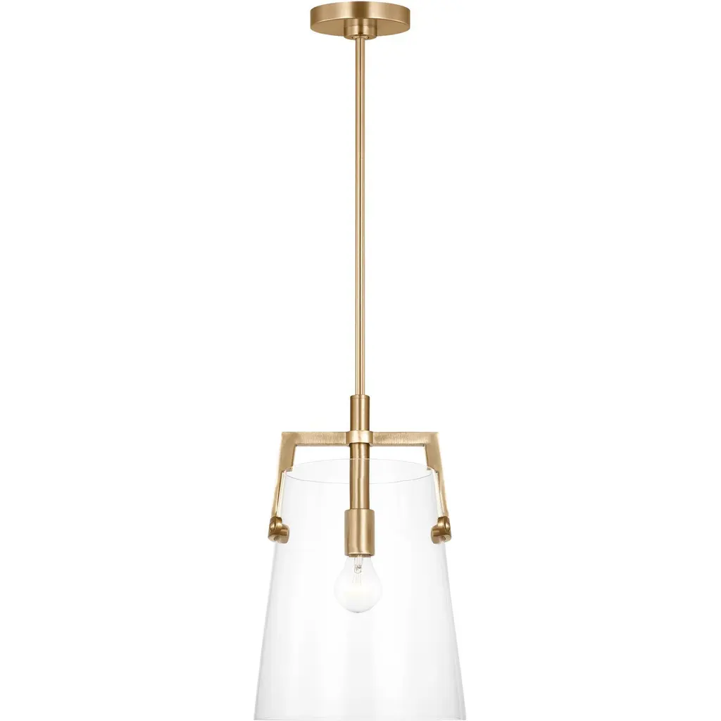 Add a bright burst of light where you need it most with the stylish Drew & Jonathan Crofton one light pendant, featuring a sleek colonial crackle clear glass shade. Made to coordinate across a broader range of bath hardware and design styles, the Crofton is available in four popular finishes, Brushed Steel, Chrome, Midnight Black, and Satin Brass. This light looks great on its own or installed above a bathroom vanity, and the glass shade makes it ideal for filament bulbs. This fixture may be mounted in the up or down position, and is cETLlistedfordamp locations, making it the perfect lighting solution for any space.