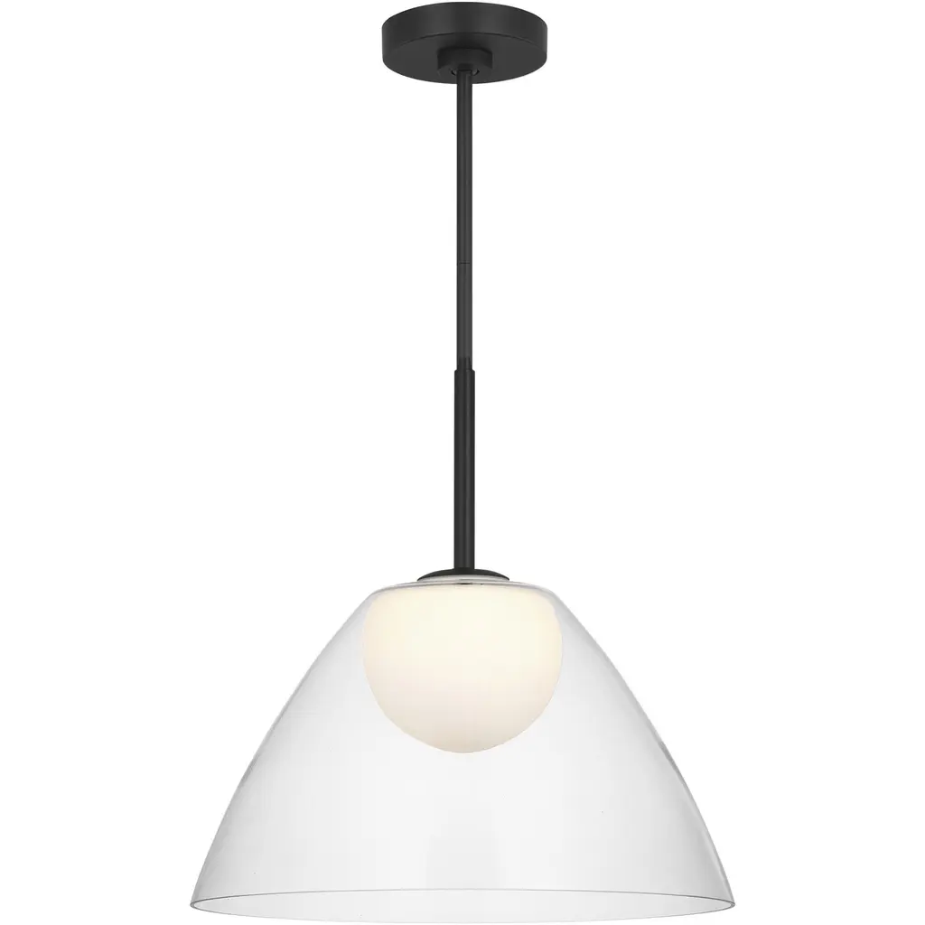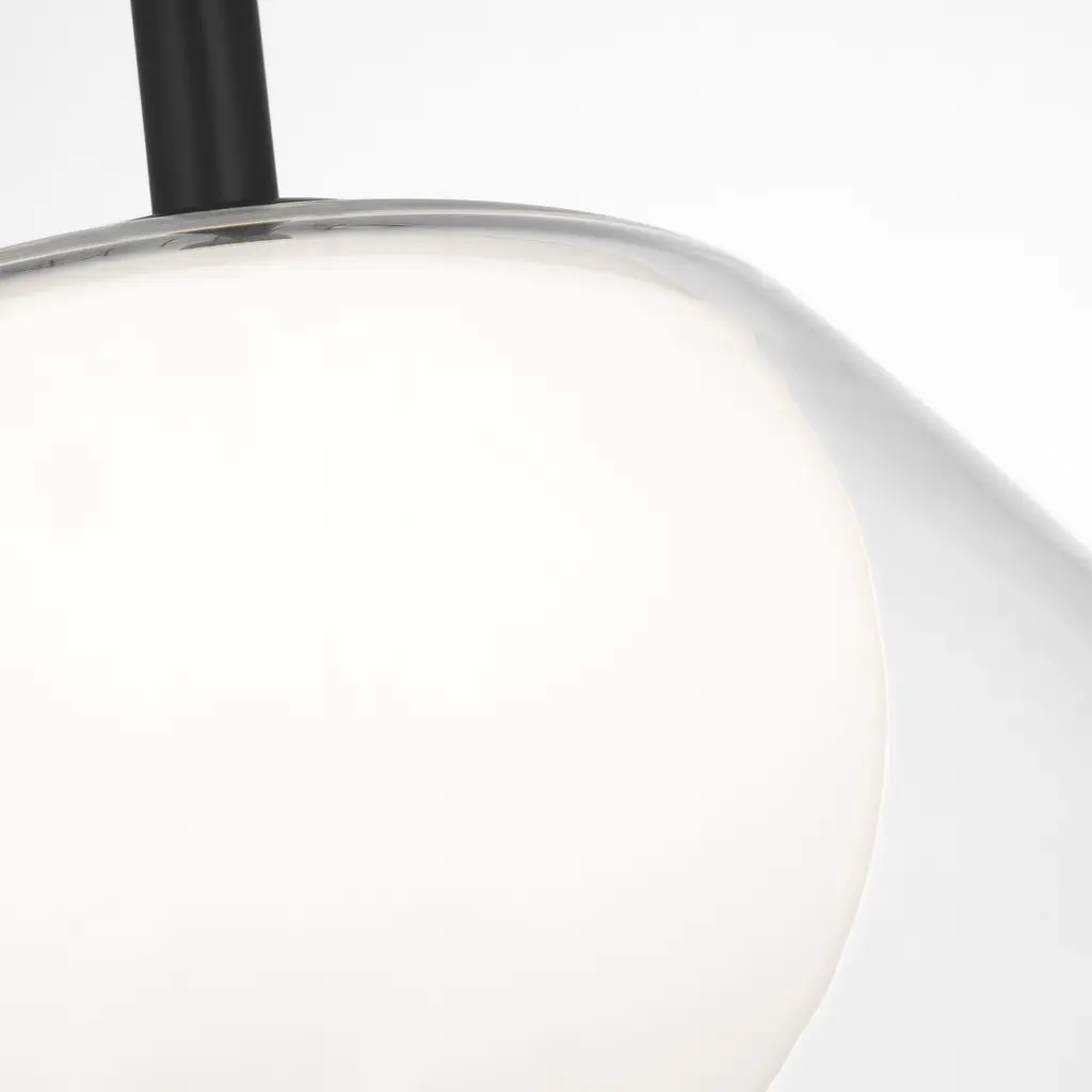 The Suma pendant by Drew & Jonathan highlights the elegance of glass revealing an etched white glass globe through a clear glass shade. Minimalist in its silhouette, the white glass creates a soft glow. Creating a buoyant feel, the pendant light can be used alone or in multiples over a kitchen island or breakfast table, or illuminating a corridor.