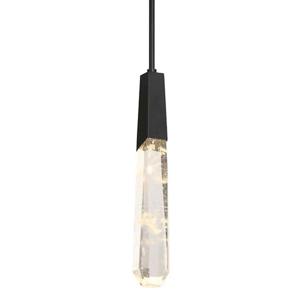 The Drifting Droplets LED Mini Pendant from George Kovacs captures the essence of crystalline beauty with its elongated faux rock crystal shade. This elegant accessory is suspended from a slender cord, creating an elegant floating effect. The transparent acrylic material mimics the organic patterns of natural crystal, while aluminum accents add a graceful touch. Hidden LED technology illuminates the intricate internal patterns, casting mesmerizing light effects on surrounding surfaces. Perfect for modern kitchens or intimate corners, the Drifting Droplets LED Mini Pendant can be installed individually or grouped in clusters.