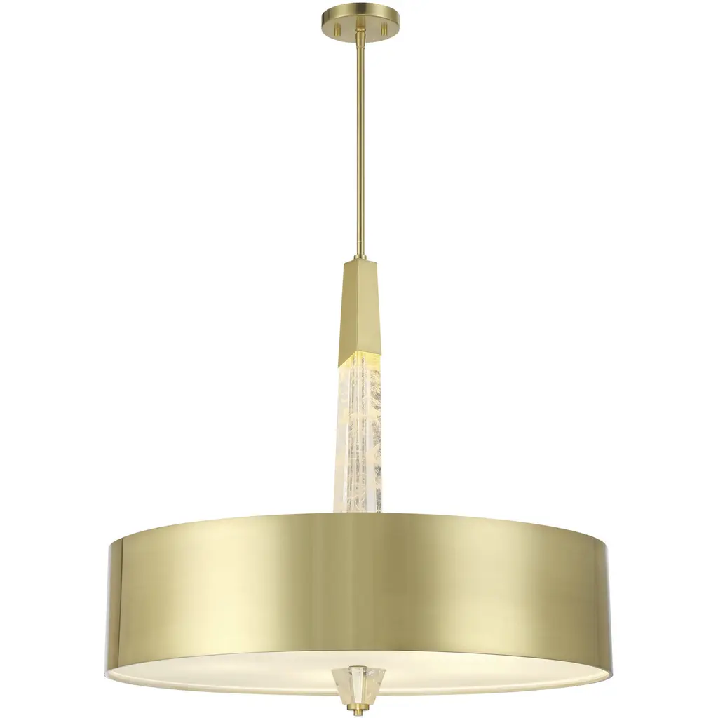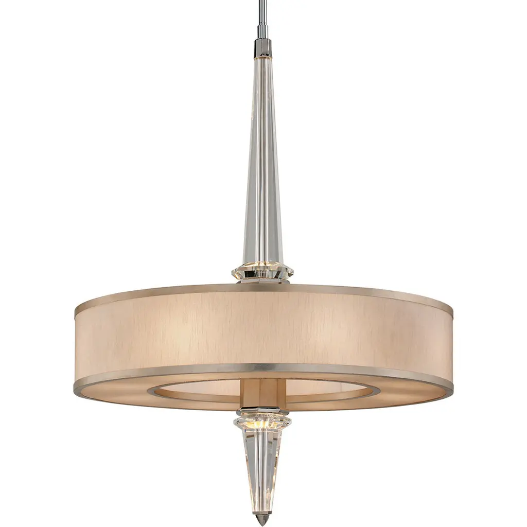 The Drifting Droplets LED Pendant from George Kovacs combines a delicate crystal core and a bold drum shade. The commanding shade hovers gracefully and features a pristine interior that amplifies luminescence. The transparent glass column appears to pierce through the shade, creating an unexpected visual tension. Crafted from top-grade aluminum and artisanal glass, this fixture exemplifies precision engineering. The Drifting Droplets LED Pendant radiates a welcoming ambient glow while providing focused downlighting, making it an exceptional centerpiece above dining tables or entryways.